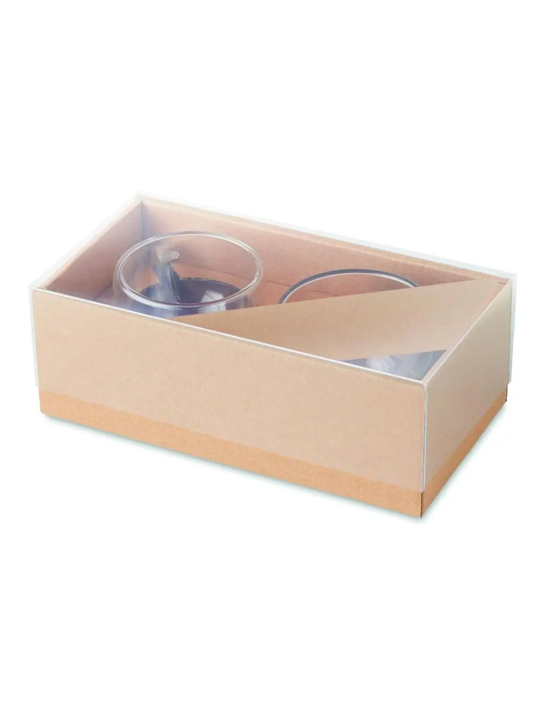 Juego de 2 tazas para café espresso de doble capa con plato de bambú. Presentado en caja de papel Kraft. Capacidad 60 ml. El bambú es material natu…