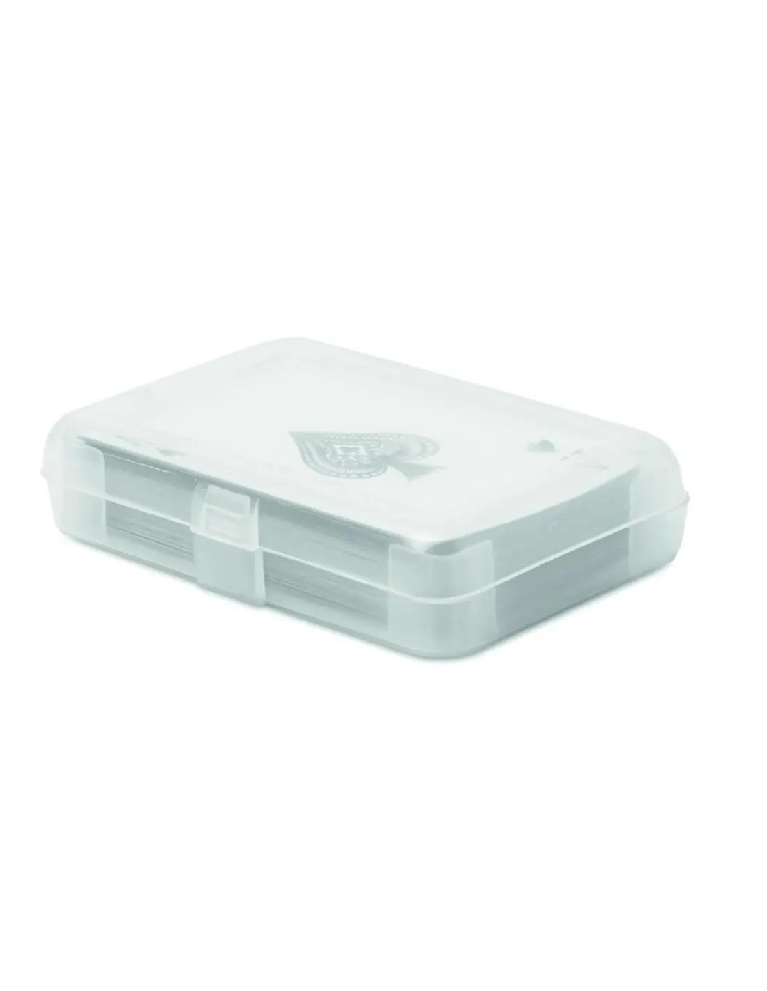 Baraja francesa de 54 cartas, presentada en caja de plástico transparente PP.