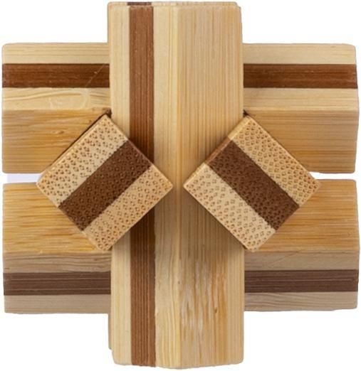Juego de paciencia de madera. Presentado en una caja de cartón marrón.