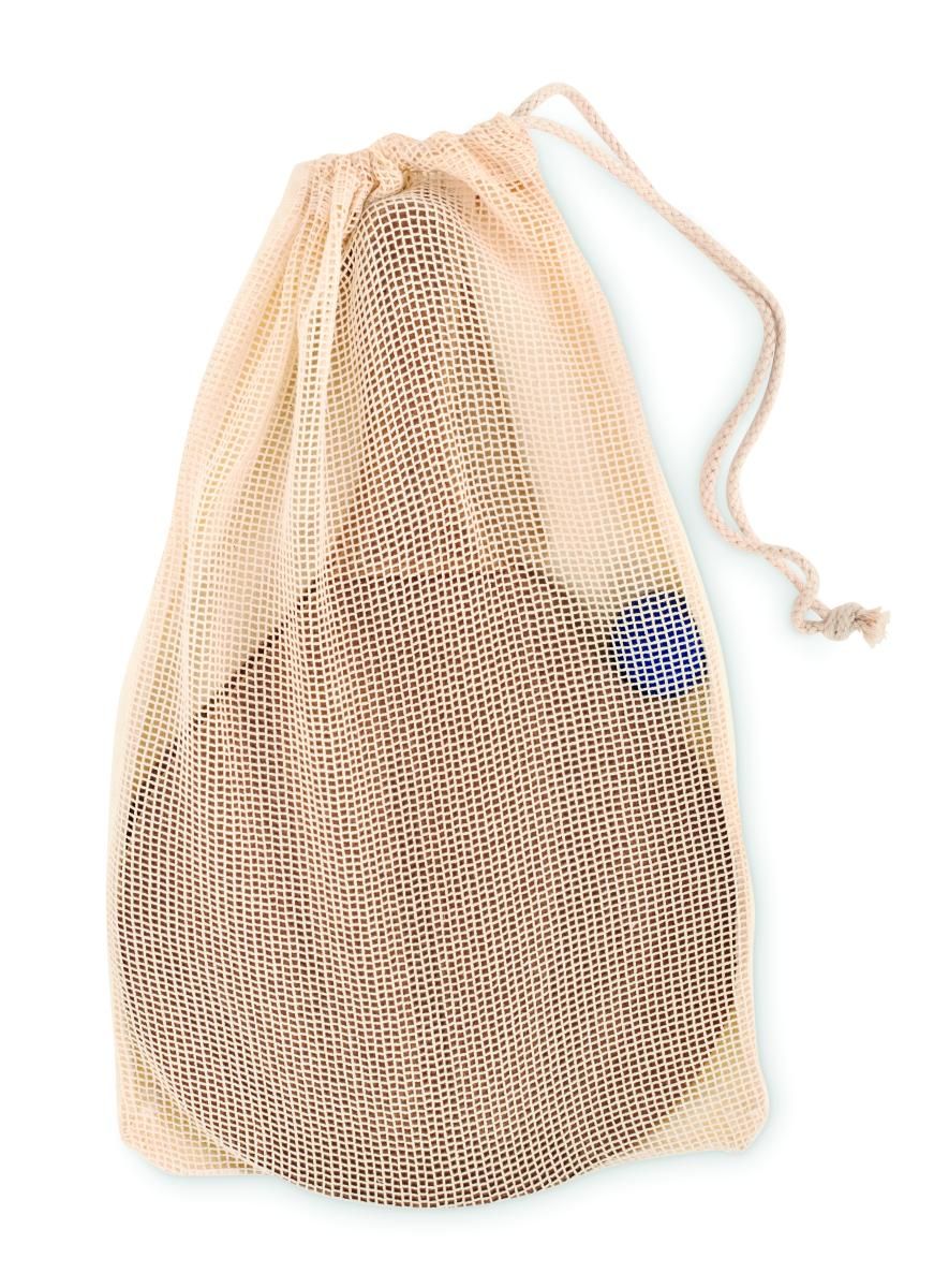 Juego de tenis de playa compuesto por 2 palas de MDF y 1 pelota blanda. Presentado en una bolsa de malla de algodón.