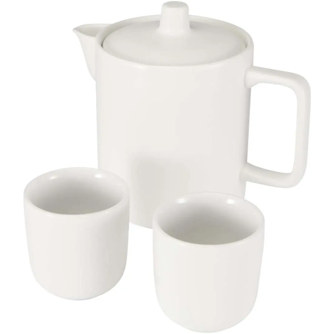 Una tetera con dos tazas a juego, perfecta para compartir un momento tranquilo o disfrutar de un té en pareja. Conjunto hecho de cerámica duradera y diseñado para el uso diario u ocasiones especiales. Elegante, fácil de usar y apto para lavavajillas. Tamaño de la tetera: 600 ml. Tamaño de las tazas: 90 ml.