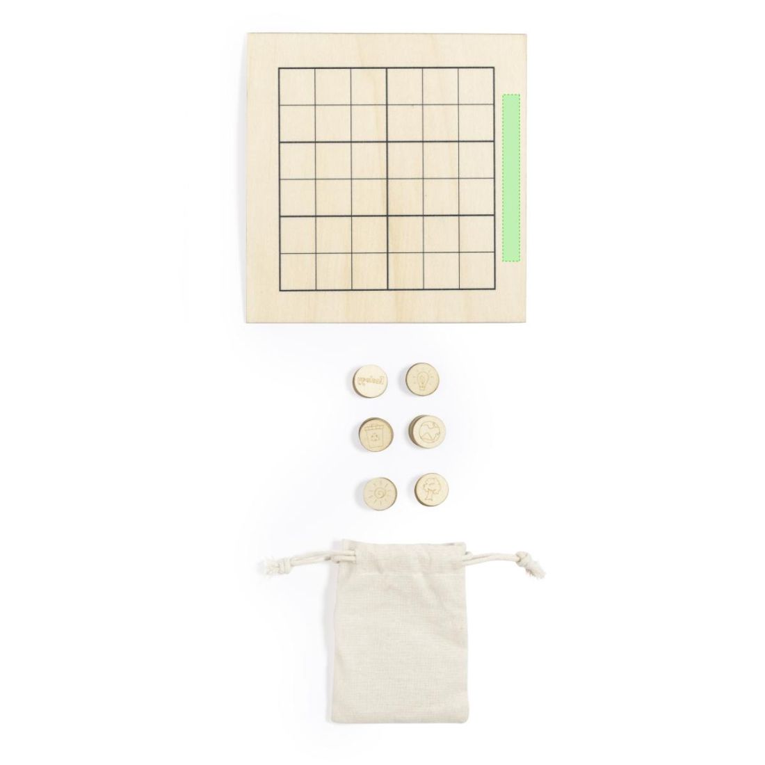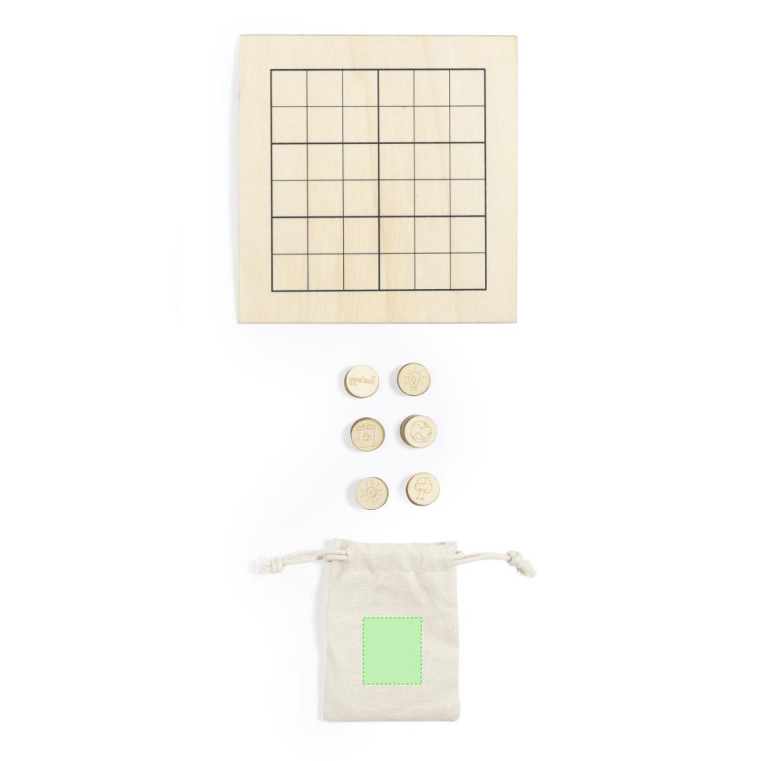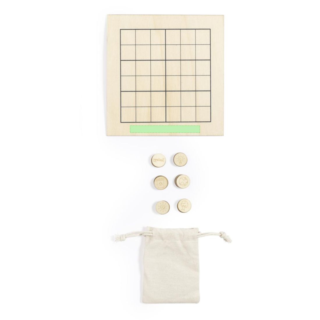 Juego de habilidad fabricado en madera. Emocionante juego sudoku con motivos ecológicos para todas las edades con tablero y 36 fichas (6 por diseño). Con práctica bolsita de algodón para guardar todas las fichas e instrucciones incluidas (español e ingles).