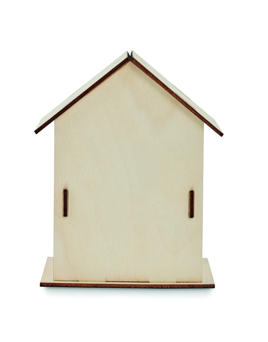 Kit de bricolaje para casitas de pájaros en madera de álamo. Incluye: 1 pincel y 6 pinturas al agua. Piezas de madera precortadas para el automontaje.