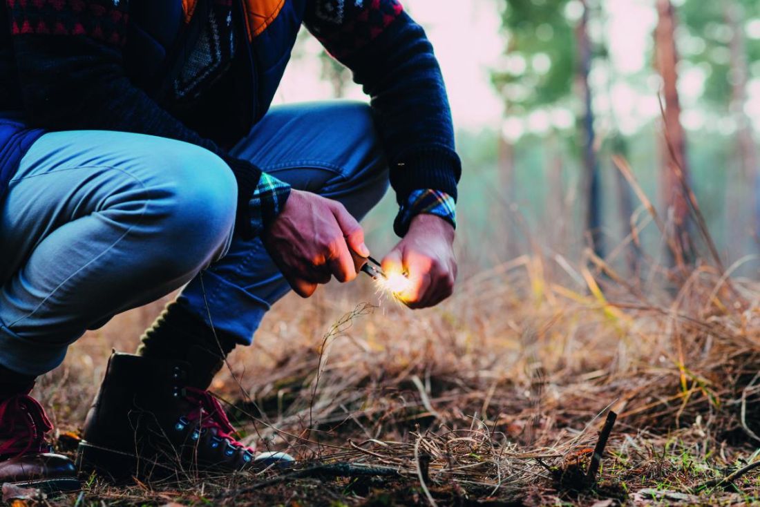 Herramientas para encender fuego en madera de pino y acero inoxidable que incluyen una varilla para encender fuego, un rascador multiusos para util…