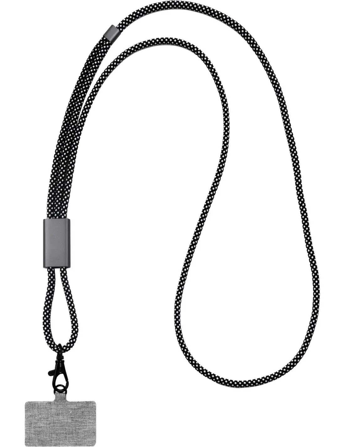 El lanyard Lany Eco es el regalo corporativo perfecto para cualquier persona que tenga un teléfono móvil. Hecho con botellas de PET recicladas, convierte tu funda en una bolsa bandolera manos libres, con un diseño metálico delgado y duradero. Compatible con el cable de carga (no es necesario quitarlo para cargar) y con la mayoría de las fundas. Por su comodidad, es el accesorio imprescindible para llevar el móvil a todas partes.