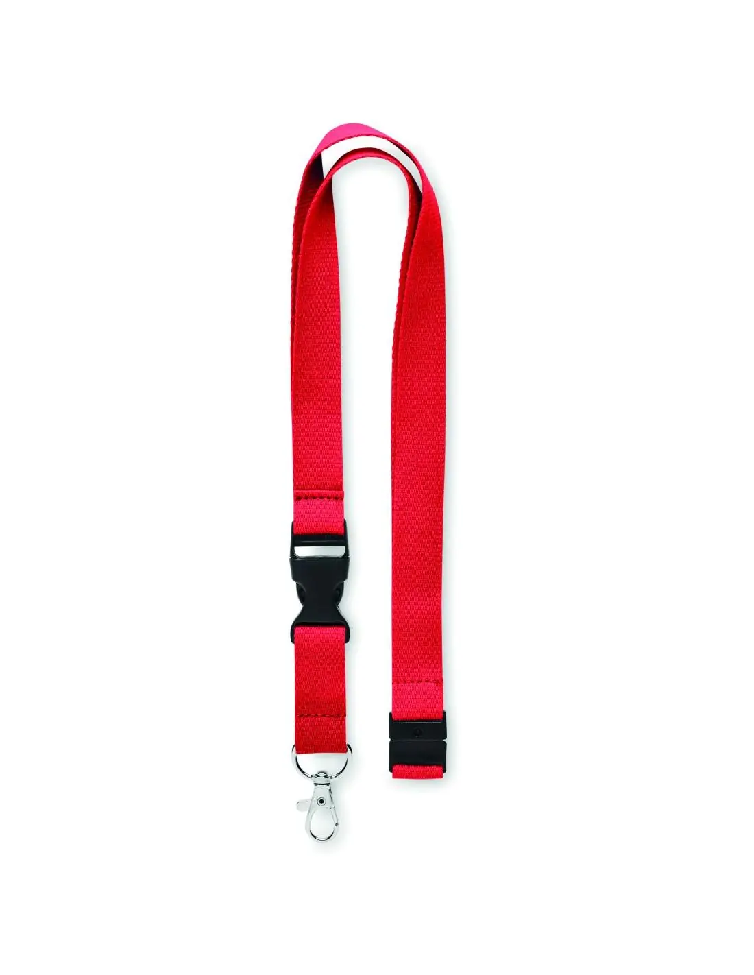 Lanyard de algodón con mosquetón metálico, hebilla desmontable y cierre de seguridad. 20 mm de ancho.