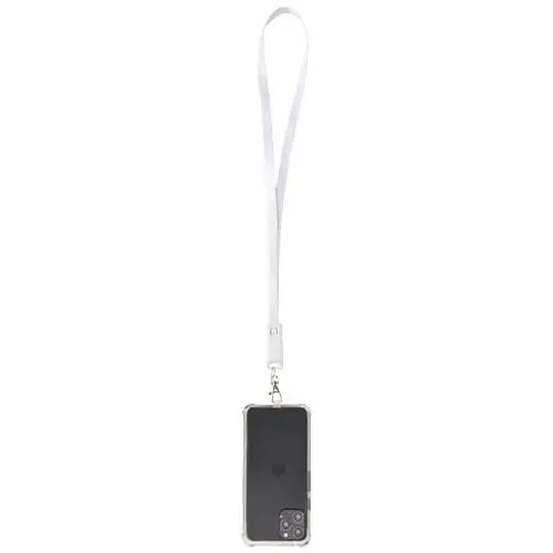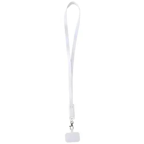 El lanyard para smartphone fabricado en plástico reciclado es un práctico accesorio que incorpora un cable de carga 5 en 1 de 65 W, con entradas tipo C y USB-A, y salidas tipo C, Lightning y microUSB. Este cable es lo suficientemente potente como para cargar con rapidez la mayoría de portátiles, tabletas y smartphones. Es compatible con CarPlay y Android Auto, por lo que es perfecto para viajar, trabajar o para usar a diario.