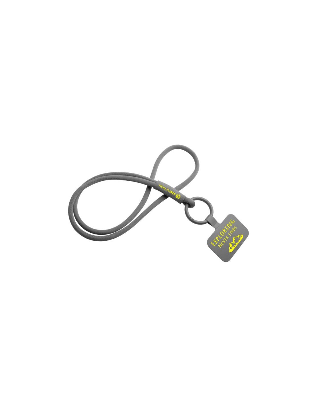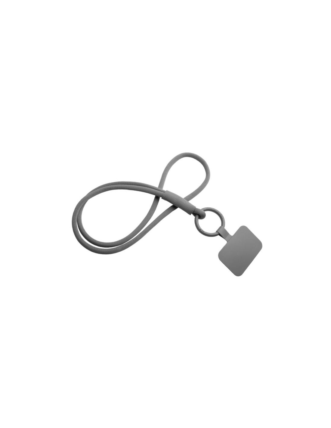 Lanyard personalizable ecológico con soporte para teléfono con tubo elástico "Tubyard" Gris.