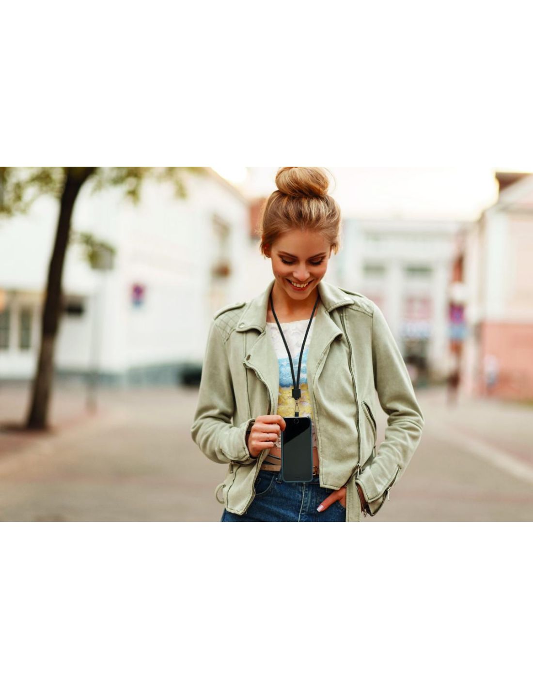 Lanyard RPET para sujetar el teléfono.