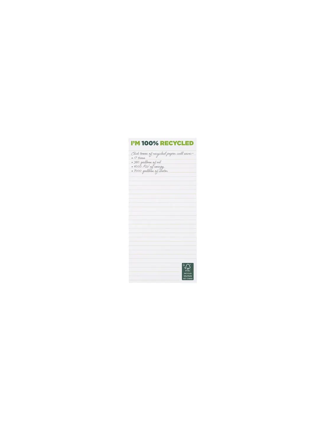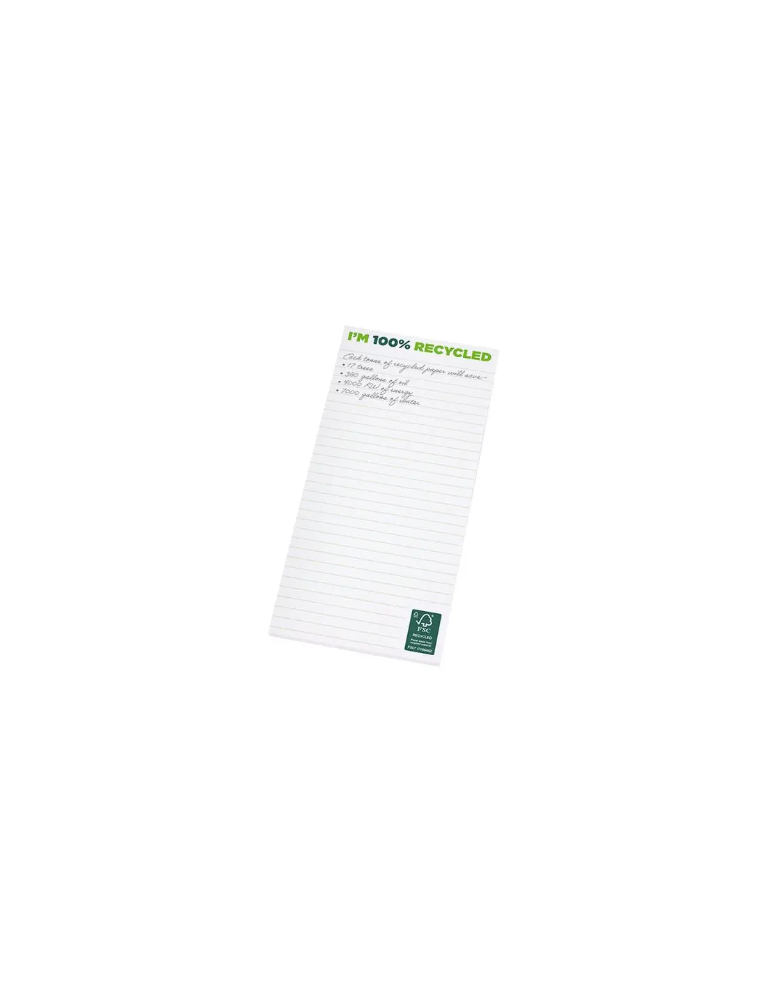 Libreta blanca 1/3 A4 de papel reciclado de 80 g/m². Impresión a todo color disponible en cada hoja. Tres tamaños disponibles (25/50/100 hojas).
