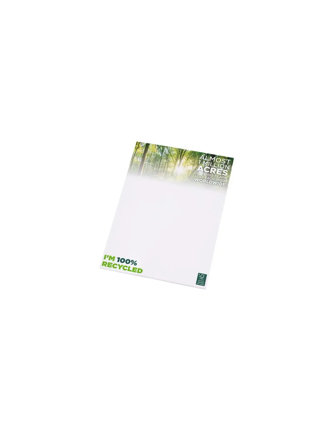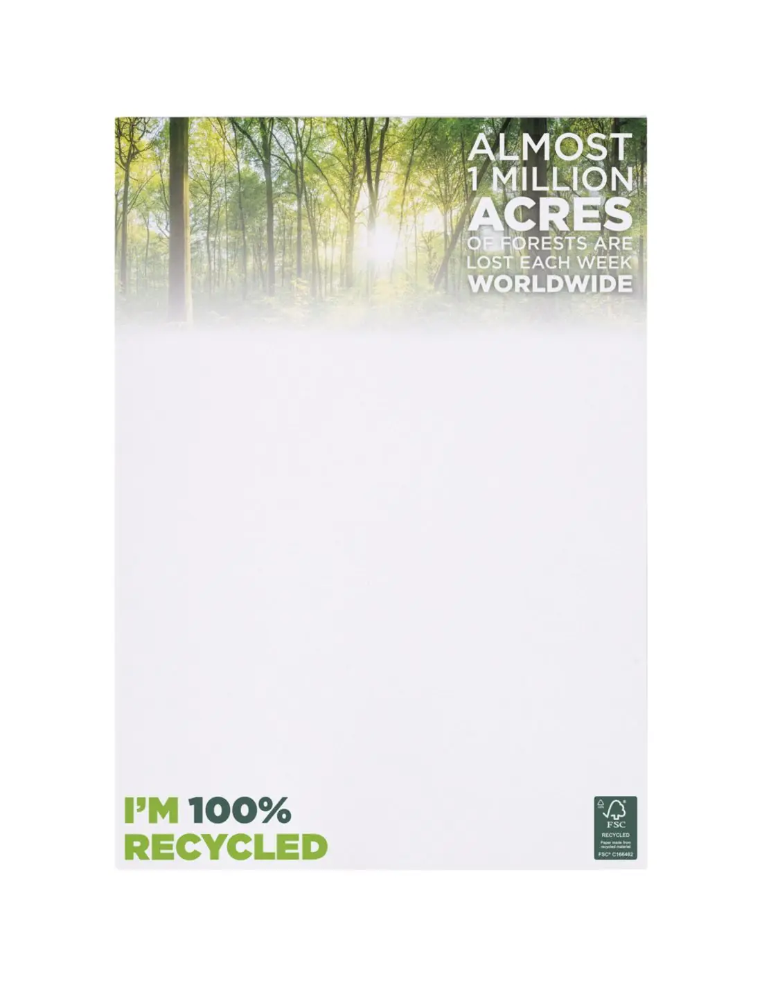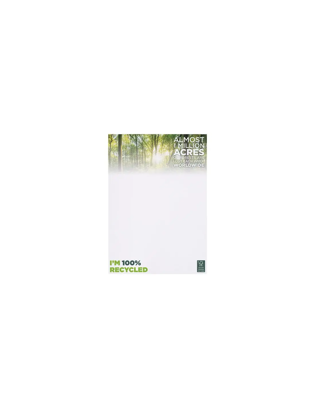 Libreta blanca A4 de papel reciclado de 80 g/m². Impresión a todo color disponible en cada hoja. Tres tamaños disponibles (25/50/100 hojas).