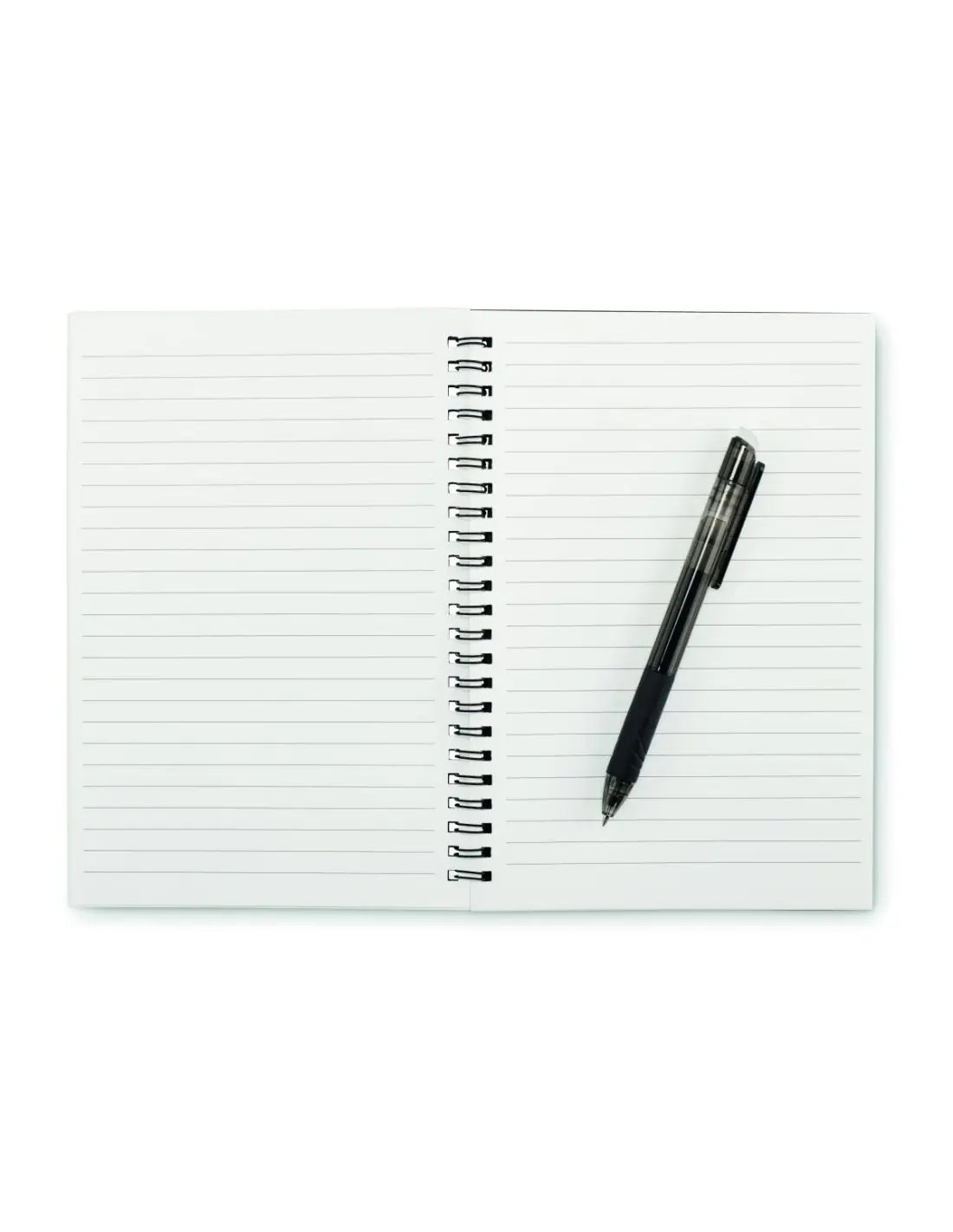 Cuaderno reutilizable A5 con cubierta de PP. 36 páginas de papel rayado mineral (18 hojas). Compatible con cualquier aplicación de escaneo de documentos. Incluye bolígrafo borrable con agua y paño de limpieza.
