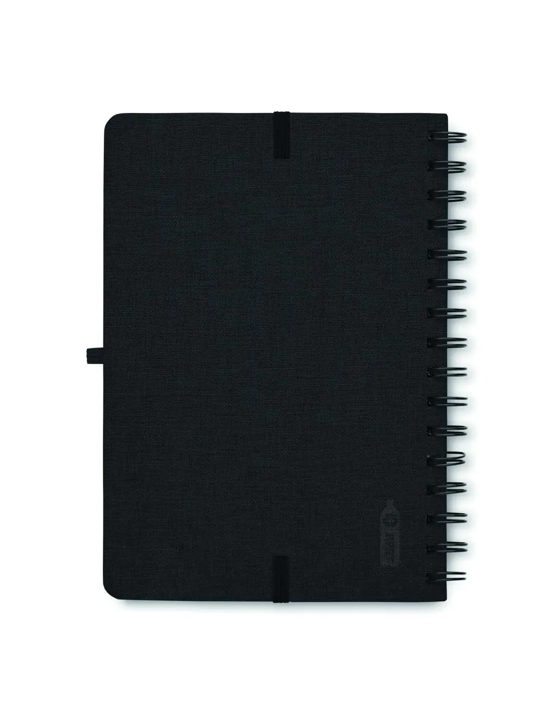 Libreta A5 de anillas con tapa dura de RPET 600D con función de soporte para smartphone. Doble hilo. 160 páginas rayadas (80 hojas). papel reciclad…