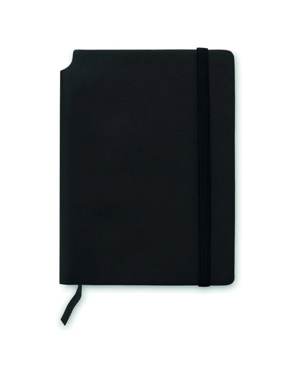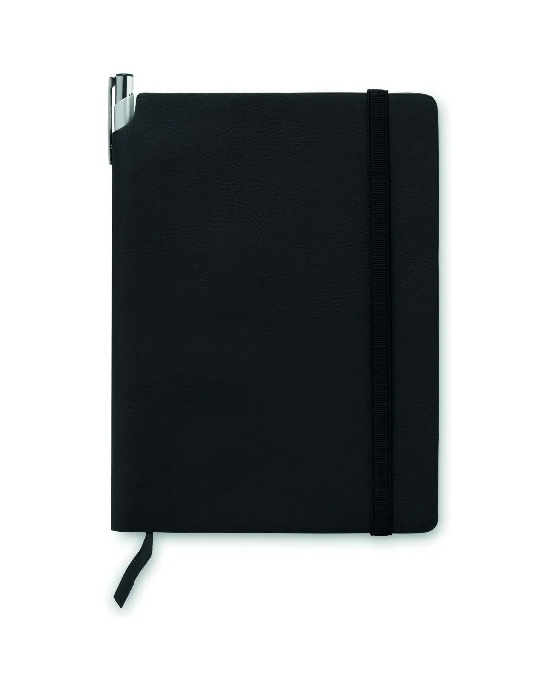 Cuaderno A5 con cubierta blanda de PU. Encuadernado en cartoné. 160 páginas de papel reciclado rayado (80 hojas). Cinta elástica de cierre y cinta marcapáginas a juego. Bolsillo interior expandible en la parte posterior. Portabolígrafos en el lomo.
