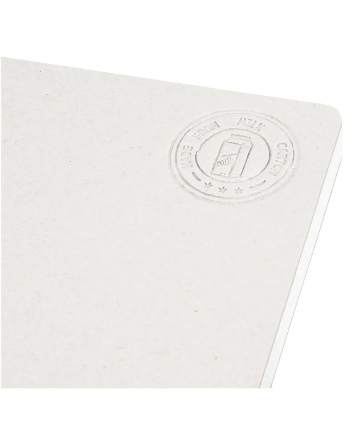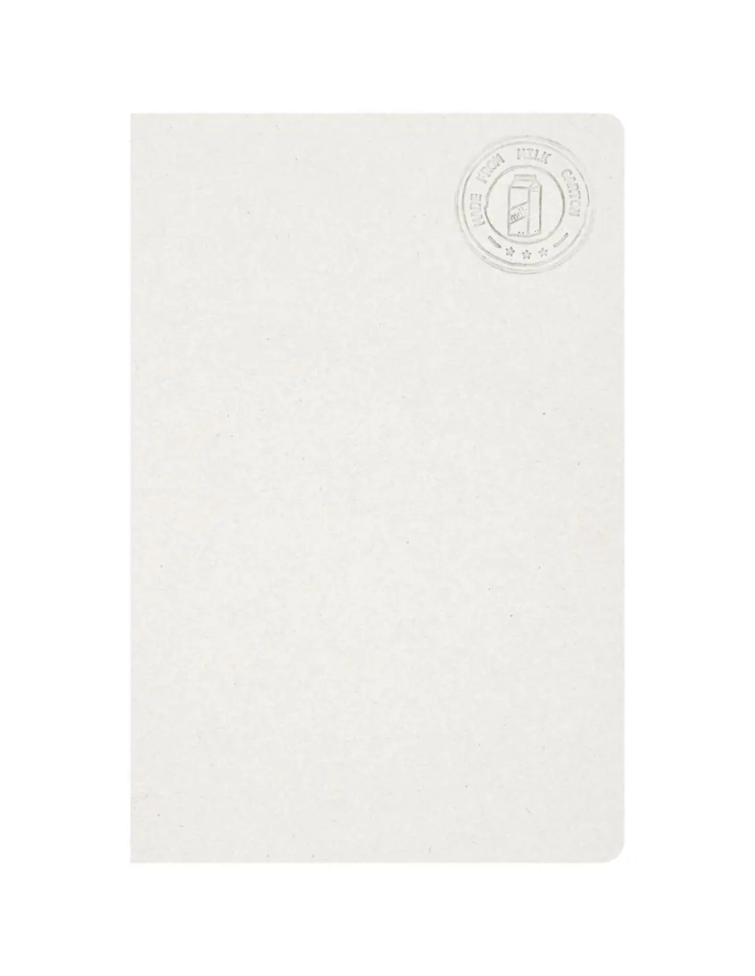 Libreta sin lomo de tamaño A5 con 80 hojas rayadas de 80 g/m², hechas a partir de cartones de leche reciclados (hasta un 70 %). Los cartones de leche usados se recogen, clasifican, procesan y convierten en papel, por lo que los residuos se transforman en un producto útil.