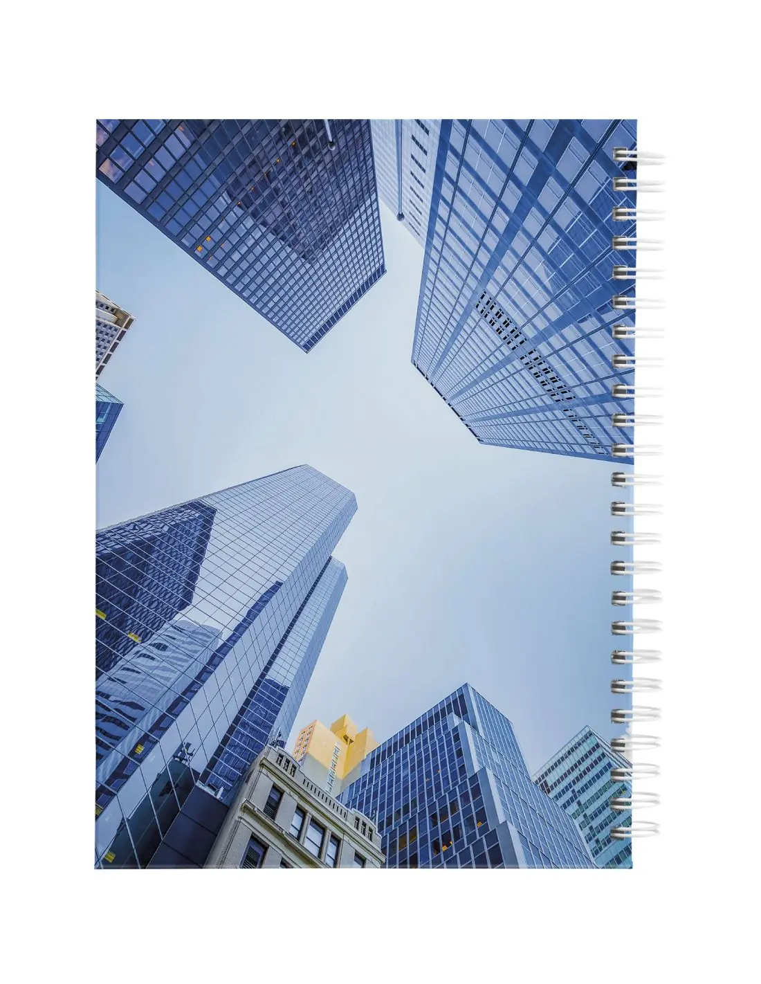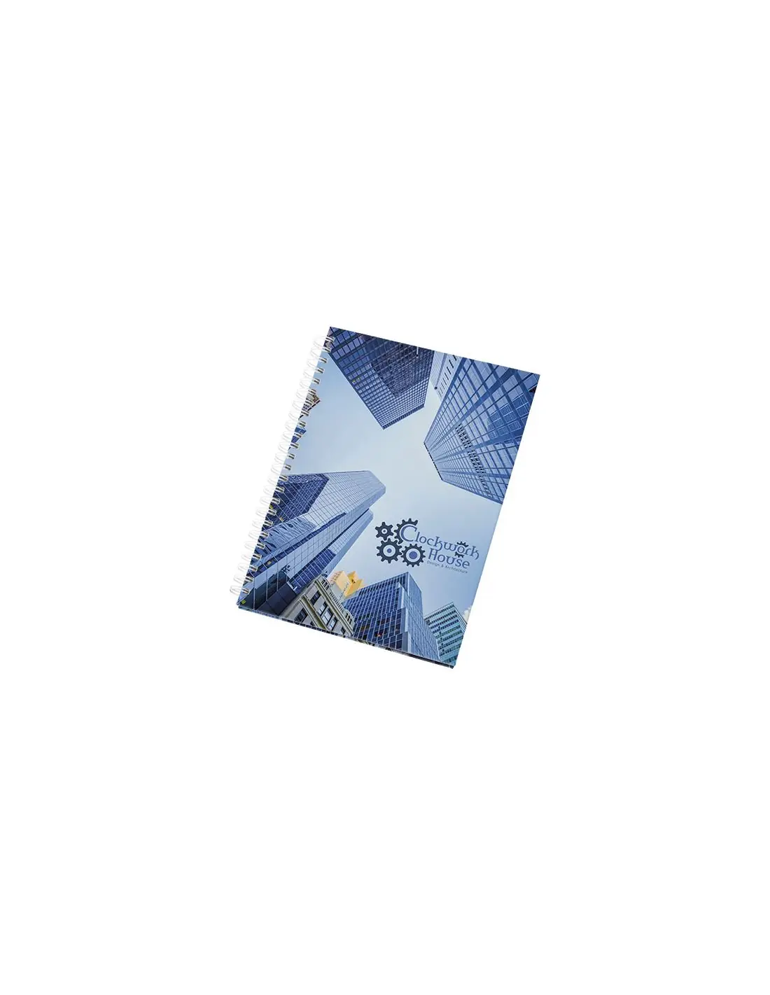 Incluye 80 hojas (80 g/m²) de papel en blanco y un alambre negro o blanco. Disponible en 3 tamaños: A4, A5 y A6. Decoración a todo color disponible en la tapa y en cada hoja, por el anverso y el reverso.