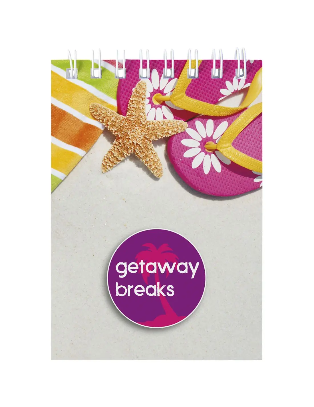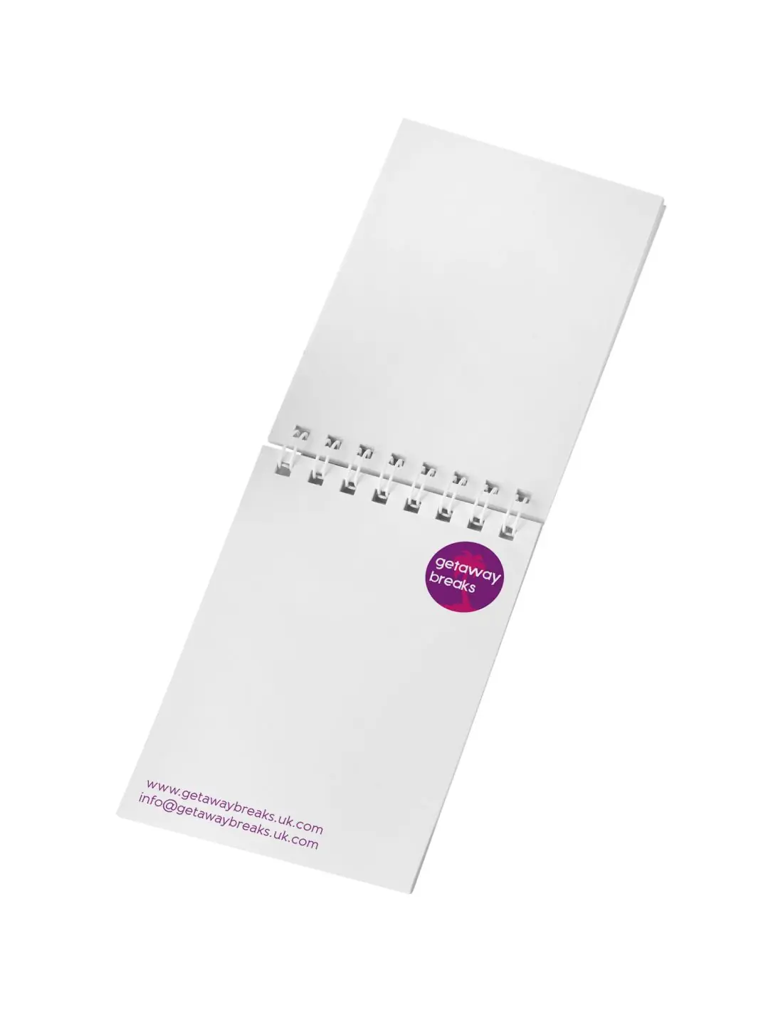 Desk-Mate® cuaderno espiral A7. Este cuaderno incluye un espiral blanco o negro, una cubierta de cartulina brillante (250 g/m2) y 50 hojas (80 g/m2) de papel en blanco. Puede personalizar las páginas de este versátil cuaderno con cualquier diseño, por lo que si desea papel rayado, cuadrados o puntos, ¡todo es posible!