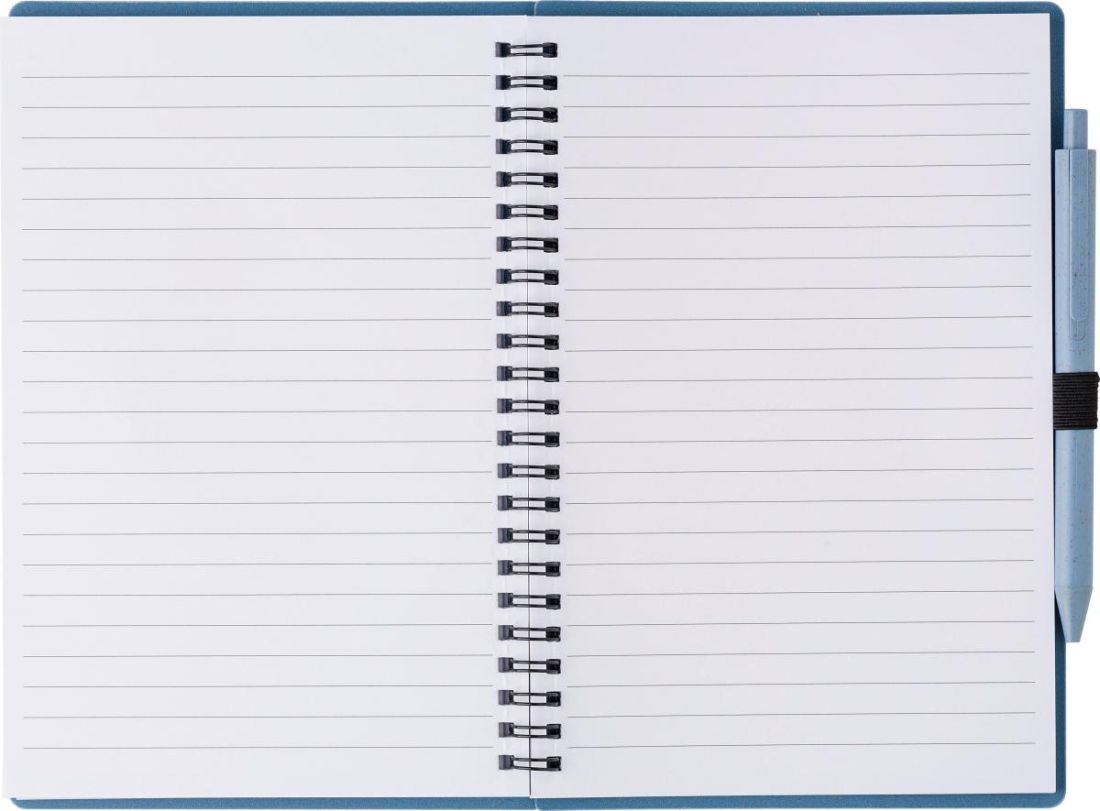 Libreta (aprox. A5) de 70 hojas lineadas y de tapa de paja de trigo y PP, y bolígrafo de paja de trigo con tinta azul.
