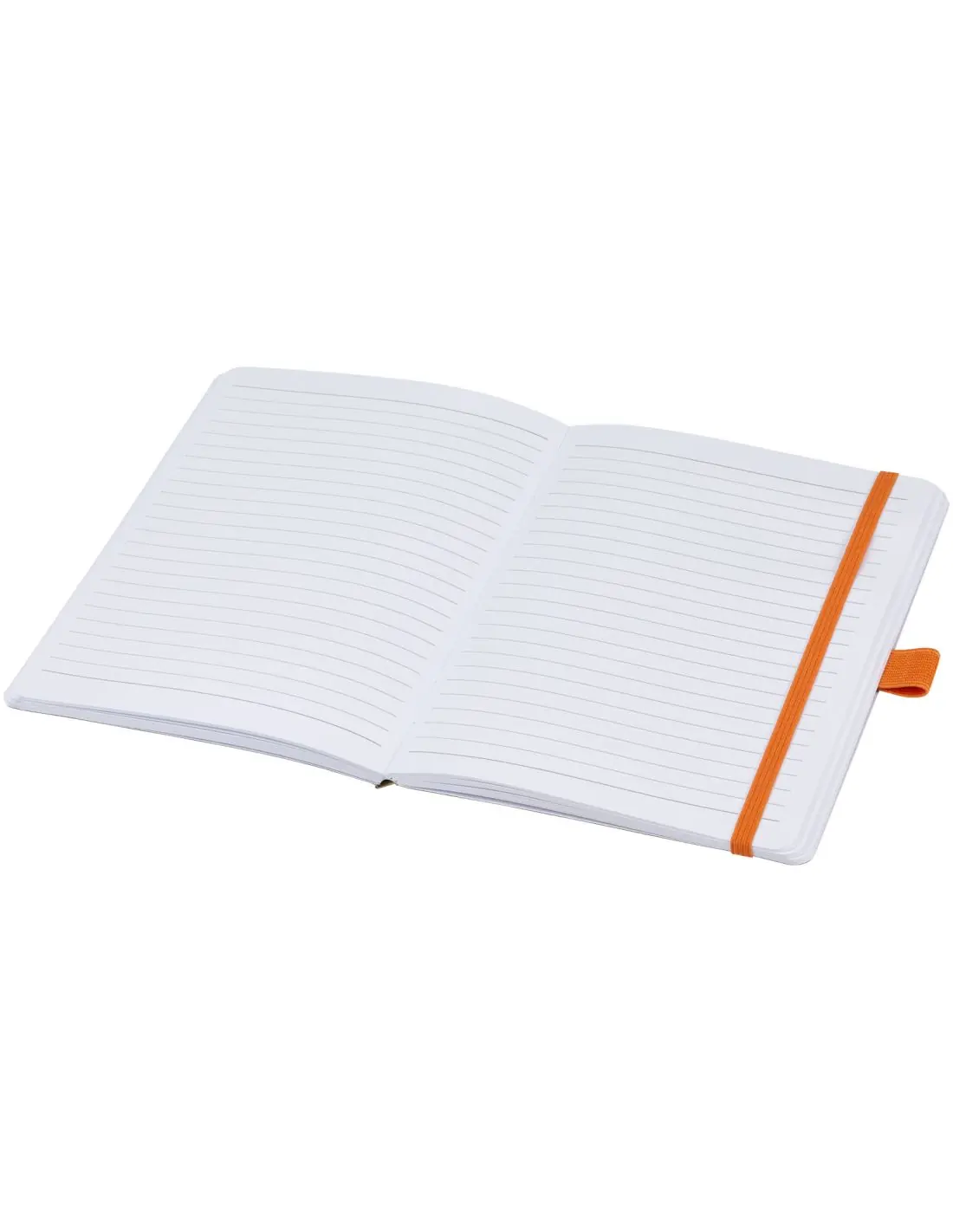 Libreta de papel con líneas reciclado (70 g/m²) 80 hojas con esquinas redondeadas, elástico de color y un soporte para bolígrafo que combina con los tonos del modelo 107384.