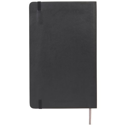 La libreta de tapa blanda tiene una tapa flexible en una gama de colores brillantes. Presenta esquinas redondeadas, cierre elástico y cinta marcapáginas. Contiene 192 páginas cuadriculadas de color marfil.