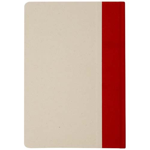 Libreta de tapa dura A5 con esquinas redondeadas y 80 hojas de papel rayado de 90 g/m² . La tapa está hecha de rPET y papel de caña de azúcar.
