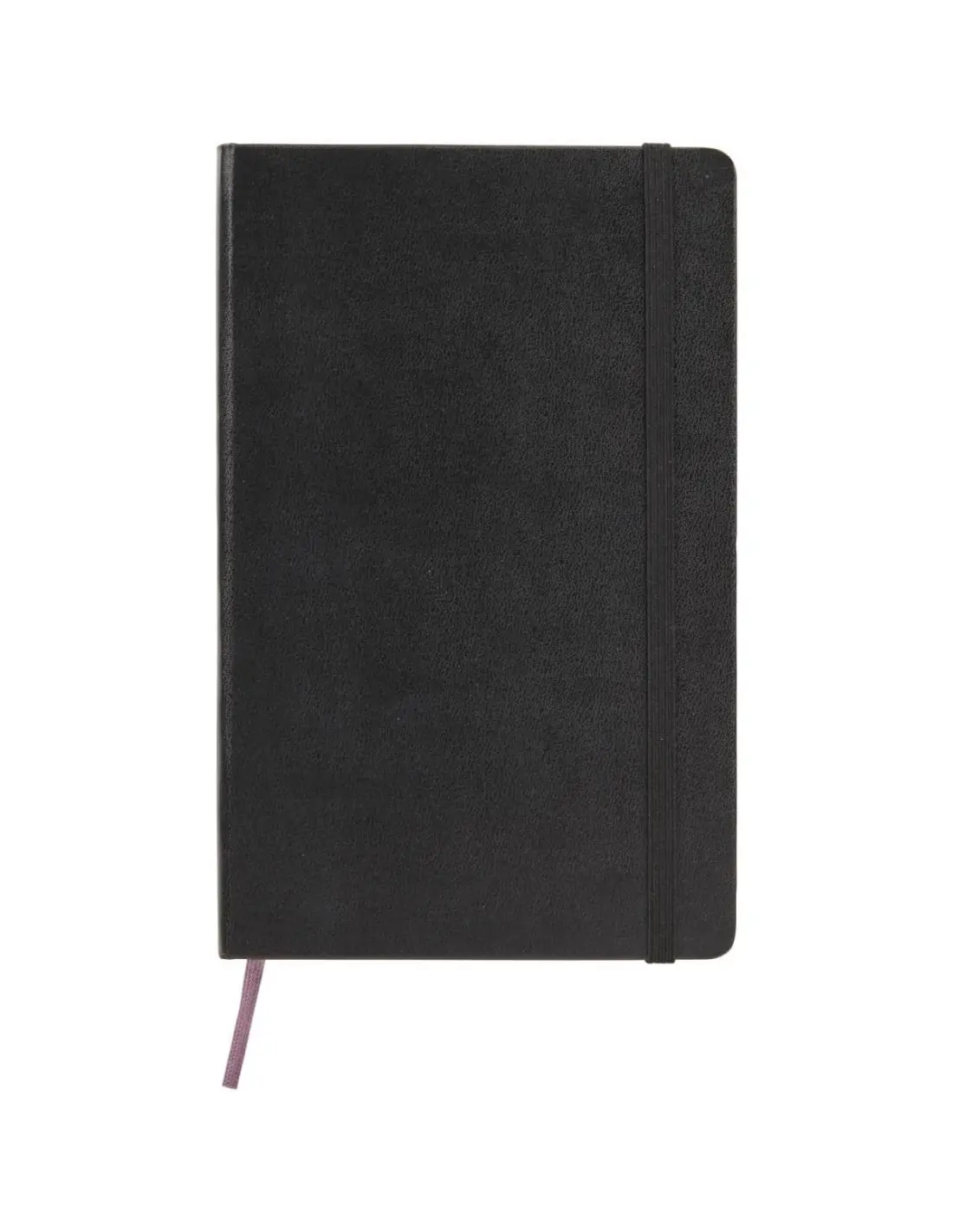 Libreta grande de tapa dura en negro (más vendido), además de en una gama de colores intensos y elegantes. Presenta esquinas redondeadas, cierre elástico y cinta marcapáginas. Bolsillo extensible...
