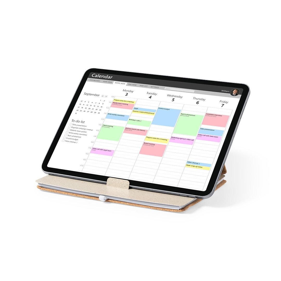 Libreta soporte de anillas de línea nature. Tapas rígidas fabricadas en corcho natural, con original soporte en caña de trigo para smartphone y...