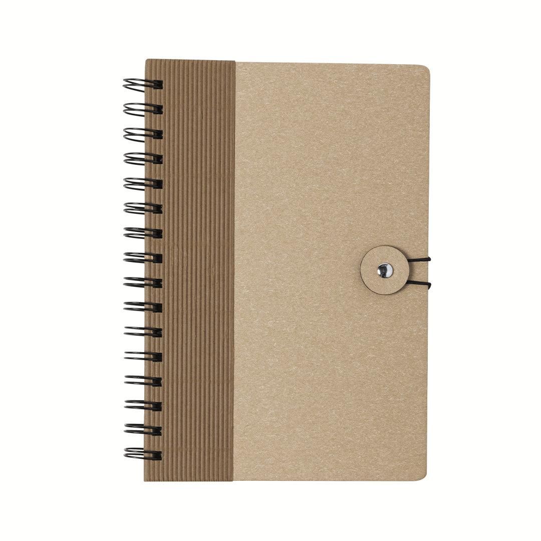 Libreta de anillas en línea nature. Con tapas rígidas de original diseño en cartón reciclado y cierre elástico. De 80 hojas con diseño eco y...