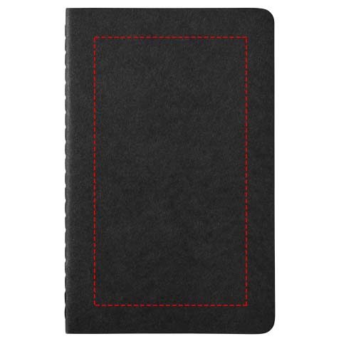 Cuenta con tapa de cartón con esquinas redondeadas. Costuras visibles en el lomo, con bolsillo interno para recoger notas sueltas. Contiene 64 páginas rayadas de color marfil de 70 g/m². Las últimas 16 hojas son desmontables. La cantidad unitaria es de una pieza.