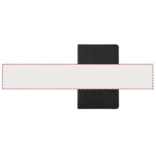 Cuenta con tapa de cartón con esquinas redondeadas. Costuras visibles en el lomo, con bolsillo interno para recoger notas sueltas. Contiene 64 páginas rayadas de color marfil de 70 g/m². Las...
