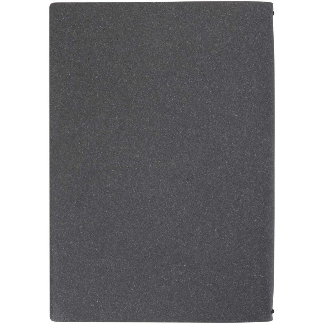 La libreta A5 rellenable tiene una cubierta de plástico reciclado con un cierre elástico que sujeta con seguridad dos cuadernos interiores, uno de puntos y otro de rayas. Cada cuaderno incluye 32 hojas de color crema fabricadas en papel de 70 g/m², con esquinas redondeadas y costura visible en el lomo para un aspecto artesanal. Las tapas de los cuadernos son de cartón. Los recambios están disponibles por separado en varios diseños, como punteado, planificador y rayado.