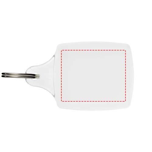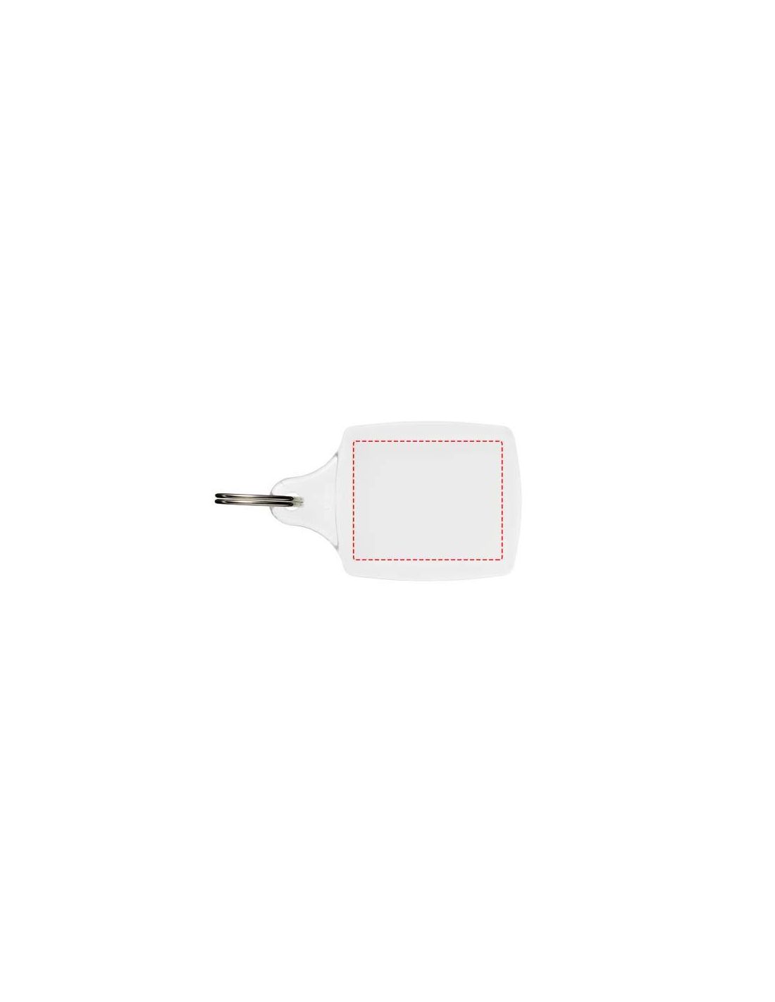 Llavero transparente A5 con anilla abierta de metal. Diseñado para incluir un encarte de papel o una foto de pasaporte extraíbles. Dimensiones del encarte impreso: 4,5 x 3,5 cm.