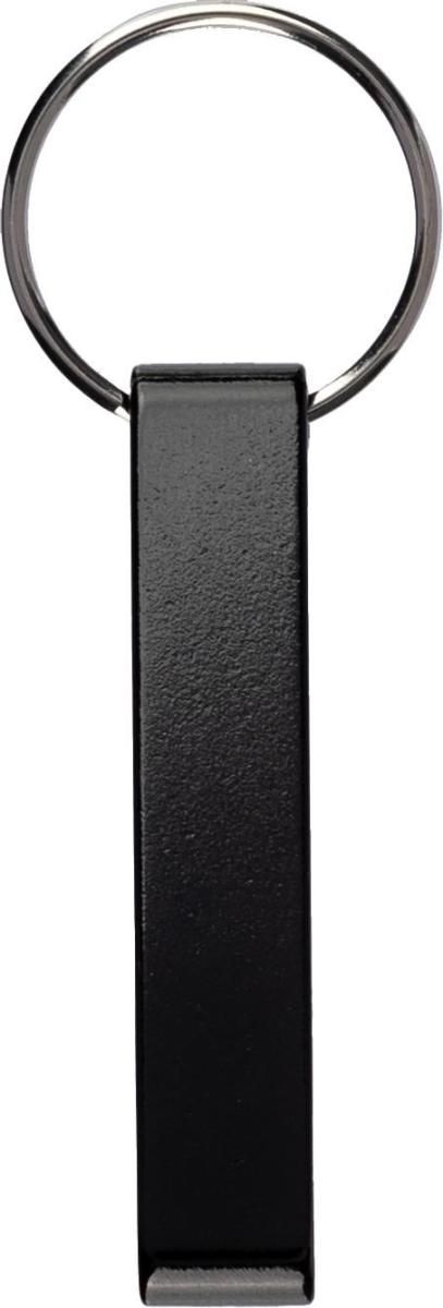 Llavero de aluminio reciclado con abridor y función de soporte para teléfono. Incluye el logotipo de aluminio reciclado grabado.
