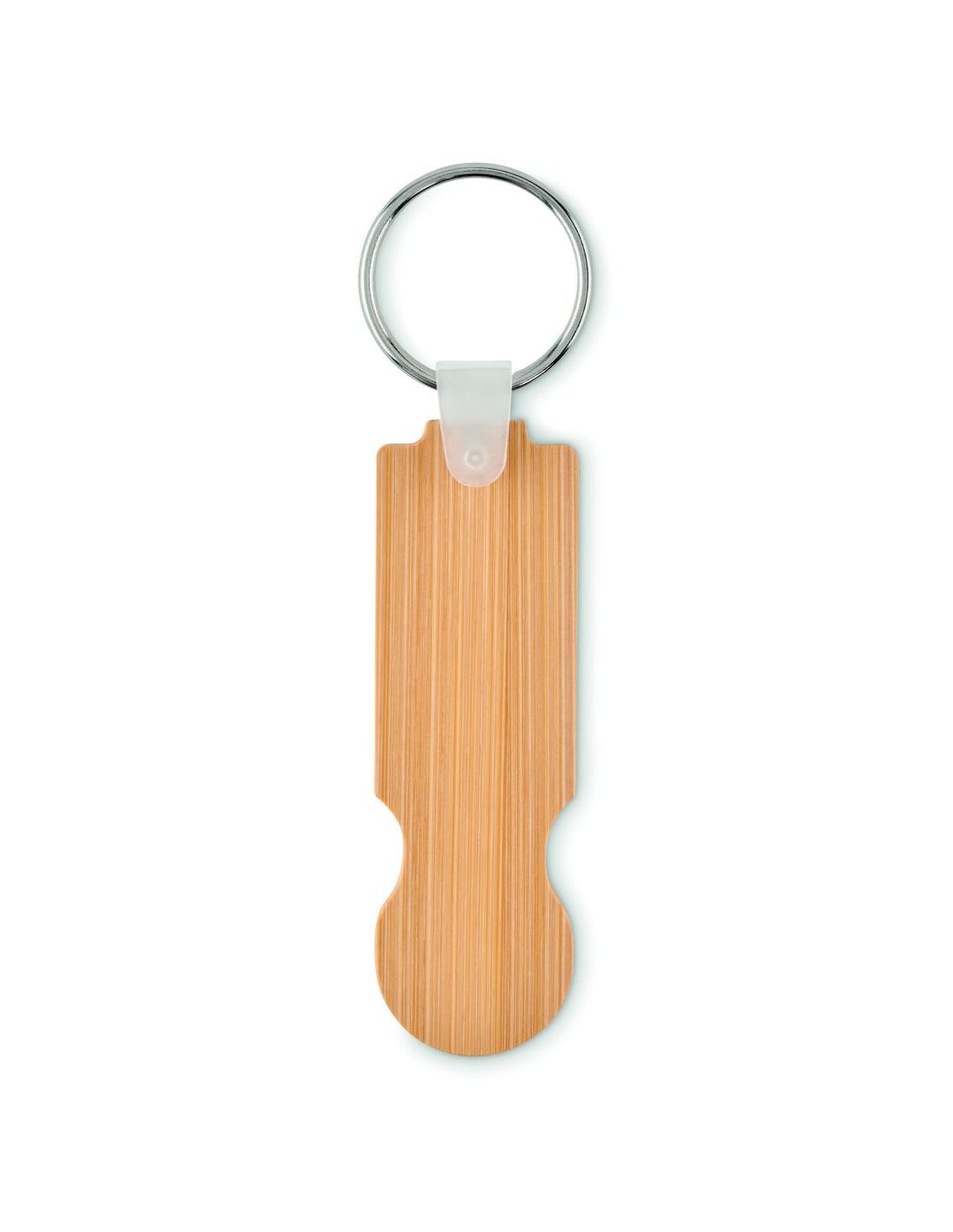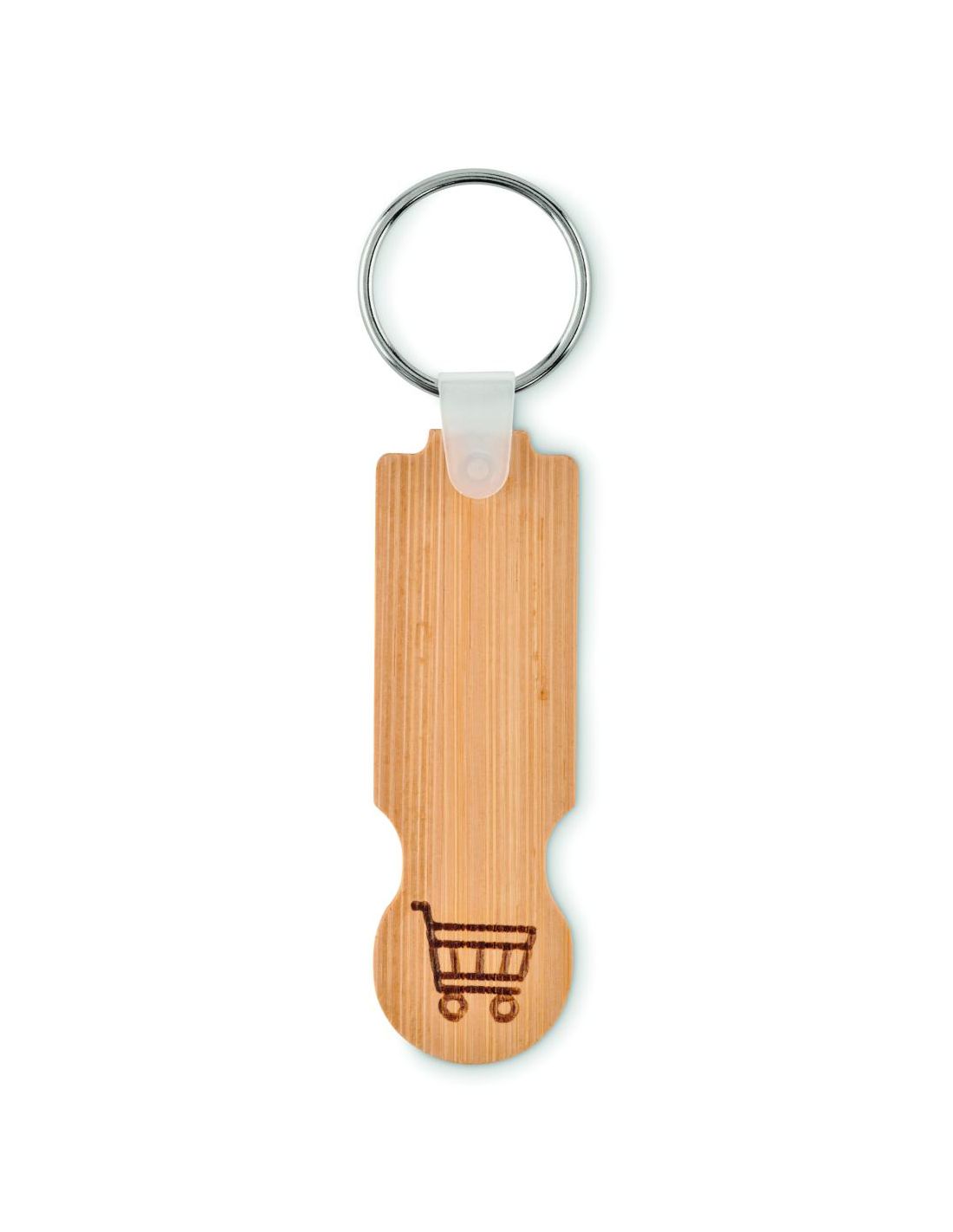 Llavero de bambú con ficha para carro de la compra. El bambú es material natural, el color del articulo puede variar.