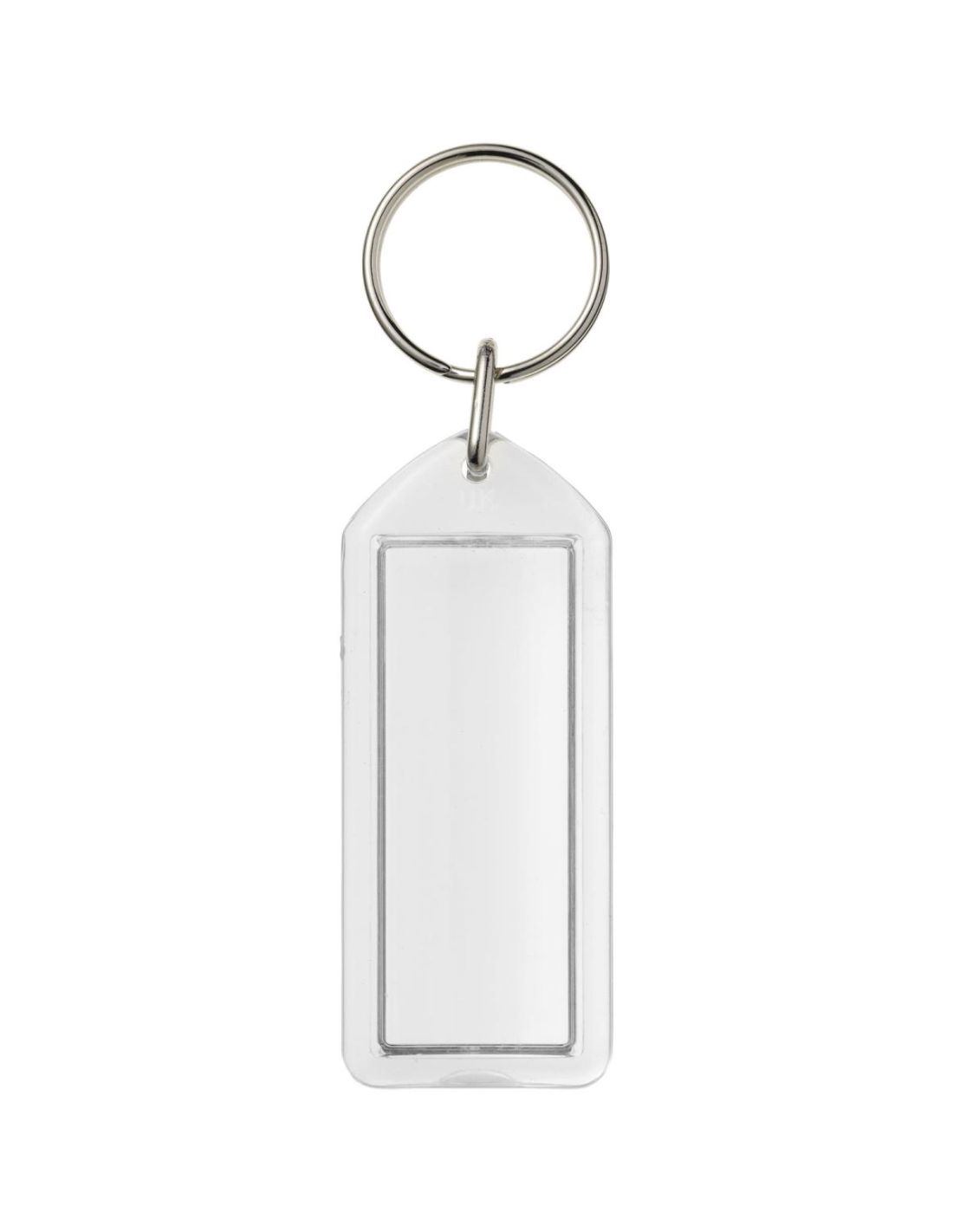 Llavero rectangular transparente F1 con anilla abierta de metal. Este llavero puede abrirse de nuevo con una moneda. La anilla de metal es de perfil plano, ideal para envíos por correo postal....