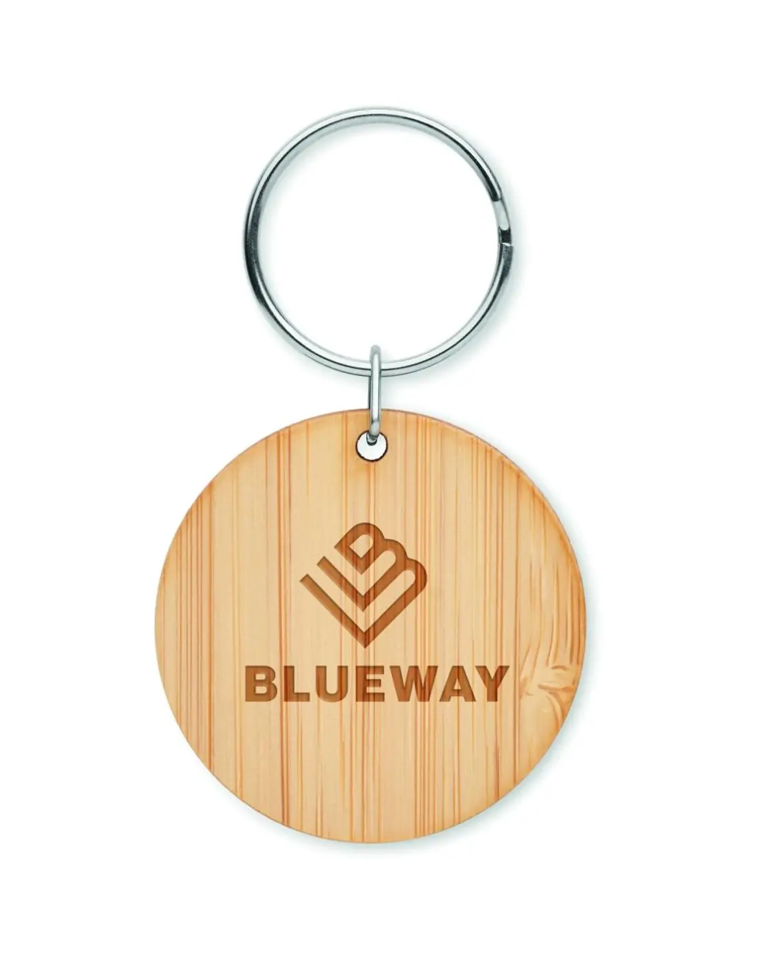 Llavero redondo de bambú. El bambú es un material natural, el color del articulo puede variar de unas piezas a otras.