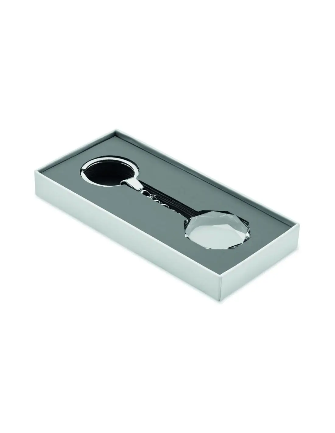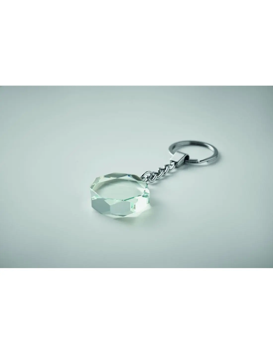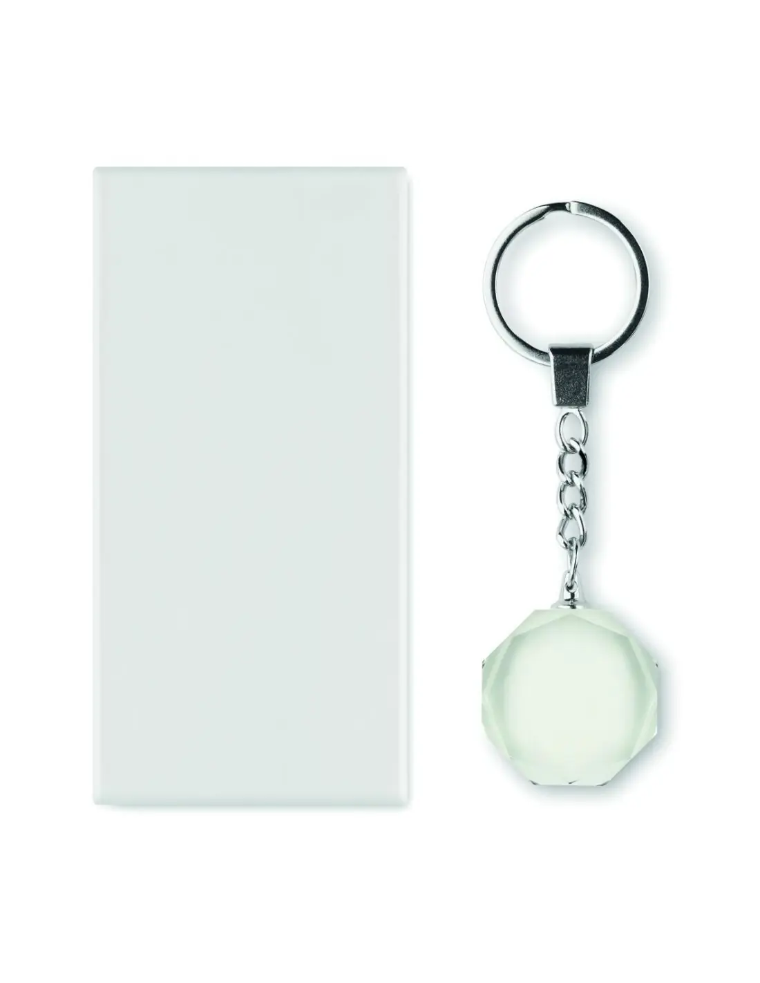 Llavero redondo de cristal para premios. Presentado en caja de regalo.