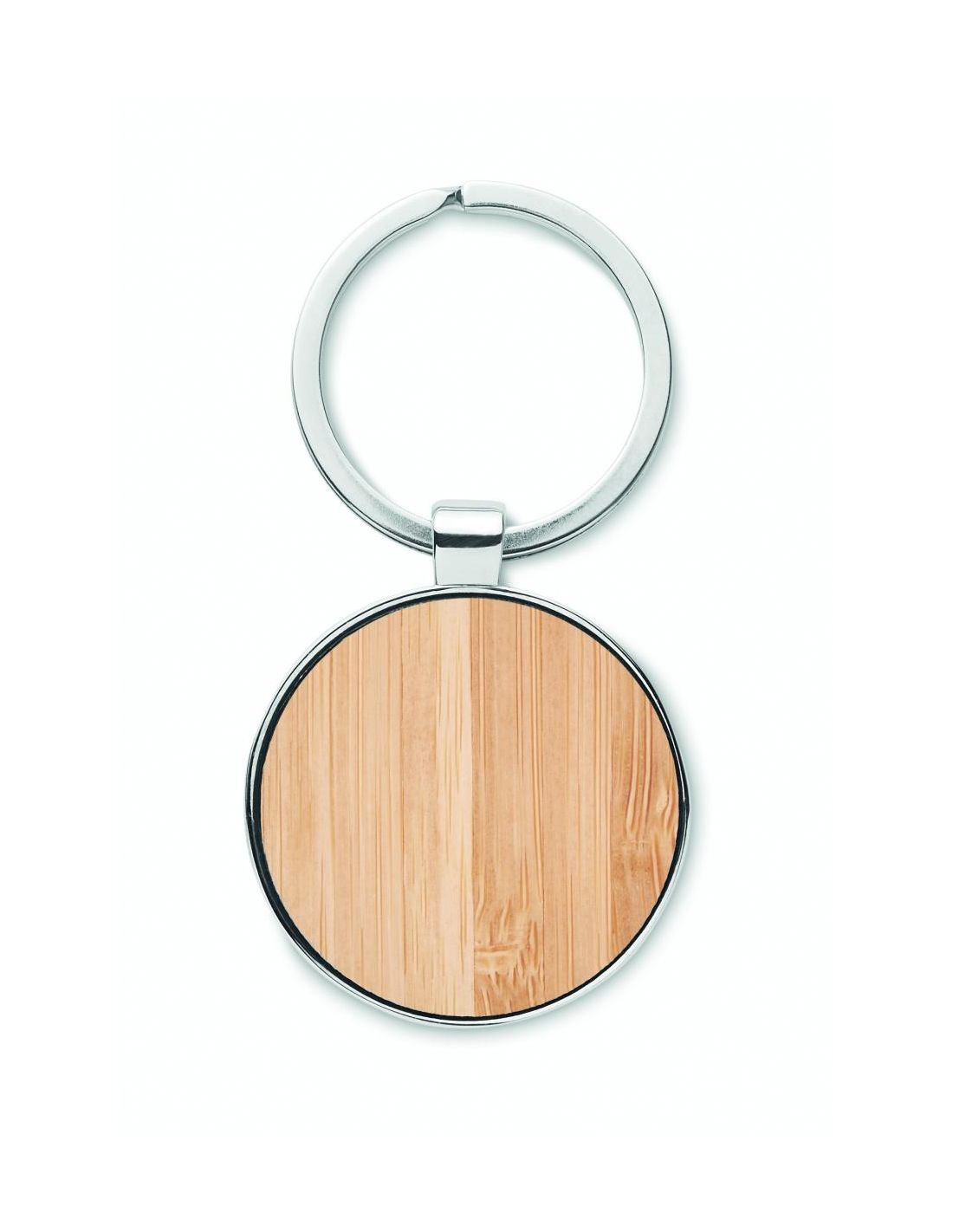 Llavero redondo de aleación de zinc con un cara de bambú. El bambú es un producto natural, puede haber ligeras variaciones en el color y el tamaño por artículo, lo que puede afectar el resultado final de la impresión. FSC 100% | N5.7 | FSC-C213206