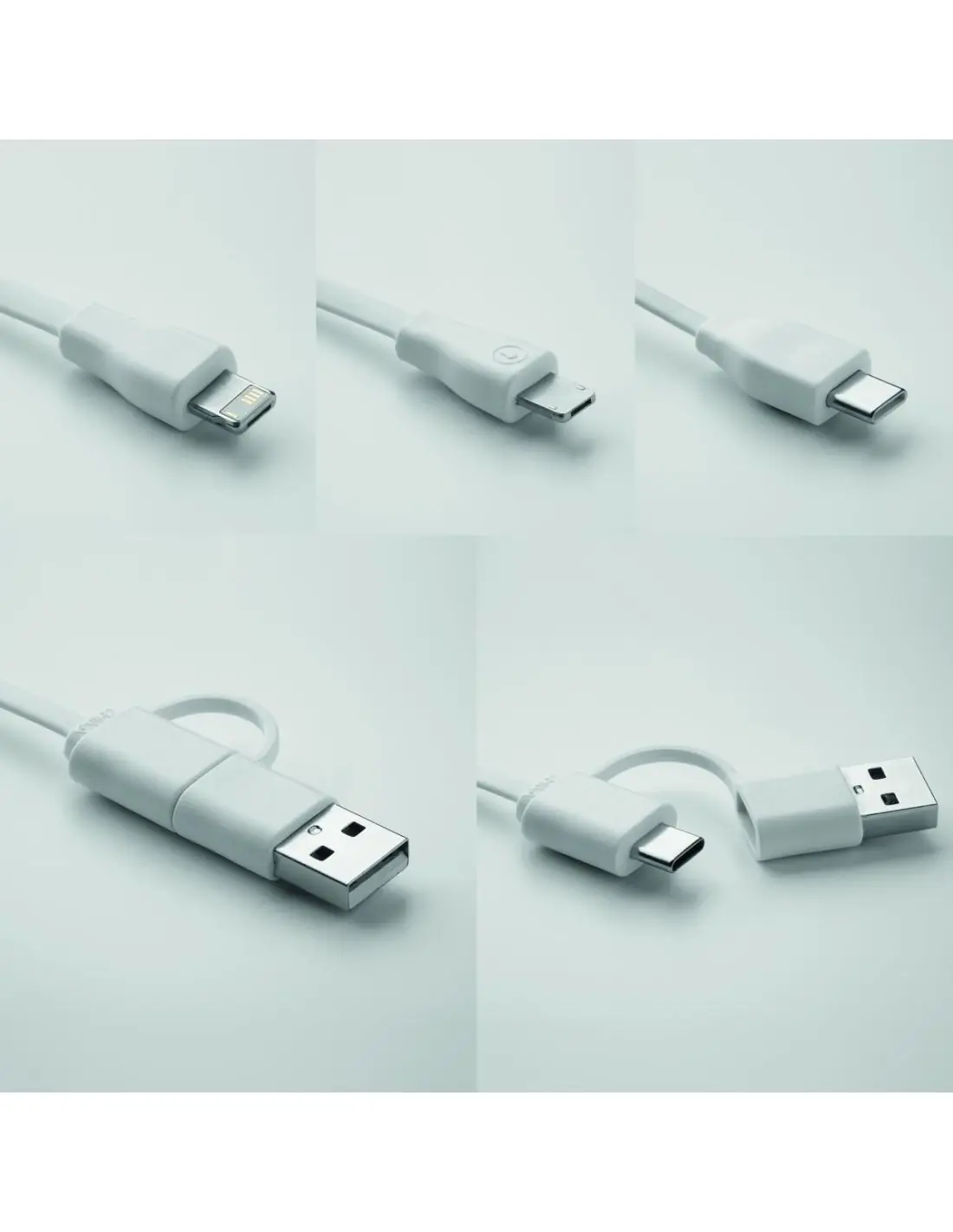 Llavero de bambú y funcionalidad de soporte para teléfono con cable de carga. Entrada: 2 en 1 Tipo-C y Tipo-A. Salida: Tipo-C y micro-B (2 en 1 pin).