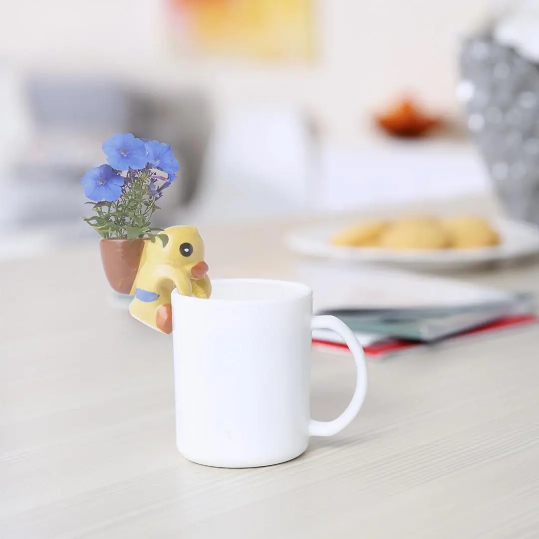 Maceta chupón en divertidos diseños de pato y gatito. Solamente hay que dejar la pajita en contacto con el agua para que la absorba y así florezcan...