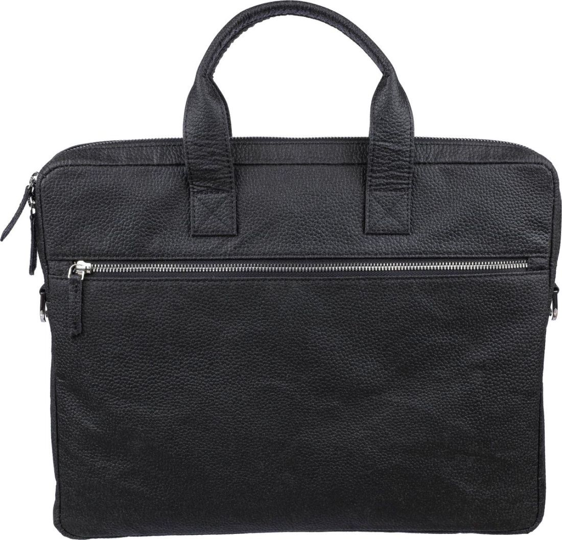 Maletín para portátil (15 pulgadas) de piel de tomate con compartimentos con cremallera en la parte delantera y superior, y un bolsillo acolchado para portátil con cierre de velcro. Múltiples bolsillos más pequeños en el interior. Con correas de hombro ajustables. Composición del material: 50% algodón, 30% tomate, 20% biopolímero.
