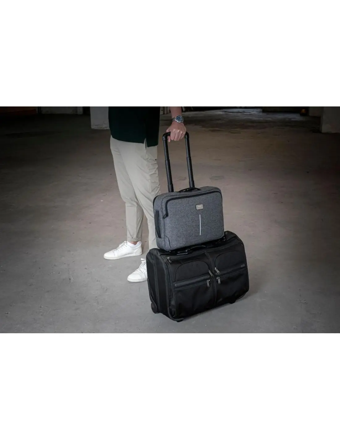 Specter es un maletín para portátil minimalista y profesional confeccionado con materiales de alta calidad. Esta bolsa puede usarse de dos formas: como mochila para después del trabajo o como maletín para ir a la oficina. El exterior es de gris tecnológico repelente al agua y a las manchas, lo que le da un aspecto liviano y moderno a la vez que protege tus pertenencias. En el interior, encontrarás un compartimento acolchado que se adapta a un portátil de hasta 16'', que incluye un bolsillo exterior y un compartimento oculto para un acceso rápido. Fabricado con tejido de PET reciclado que repele el agua y la suciedad, Specter ofrece estilo y durabilidad para el uso diario.