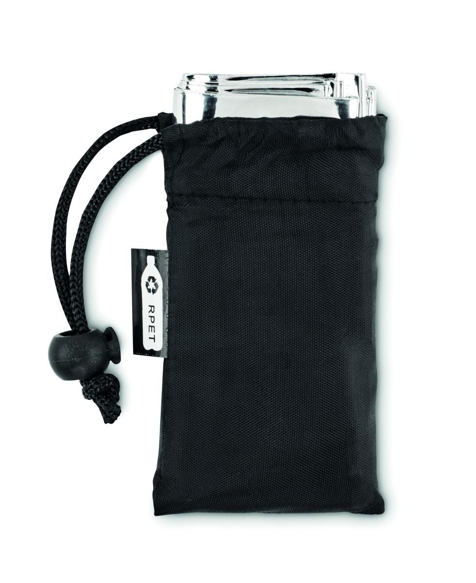 Manta de emergencia en bolsa de cuerdas de poliéster RPET. Tamaño de la manta: 130 x 210 cm.