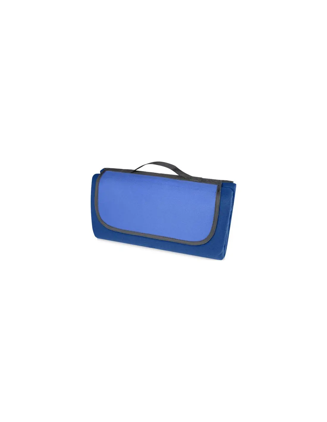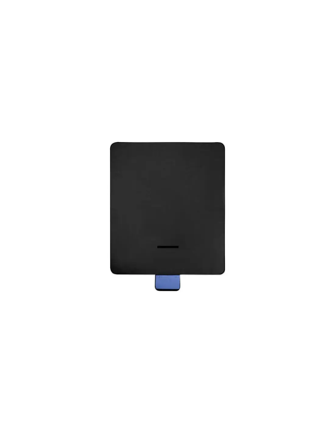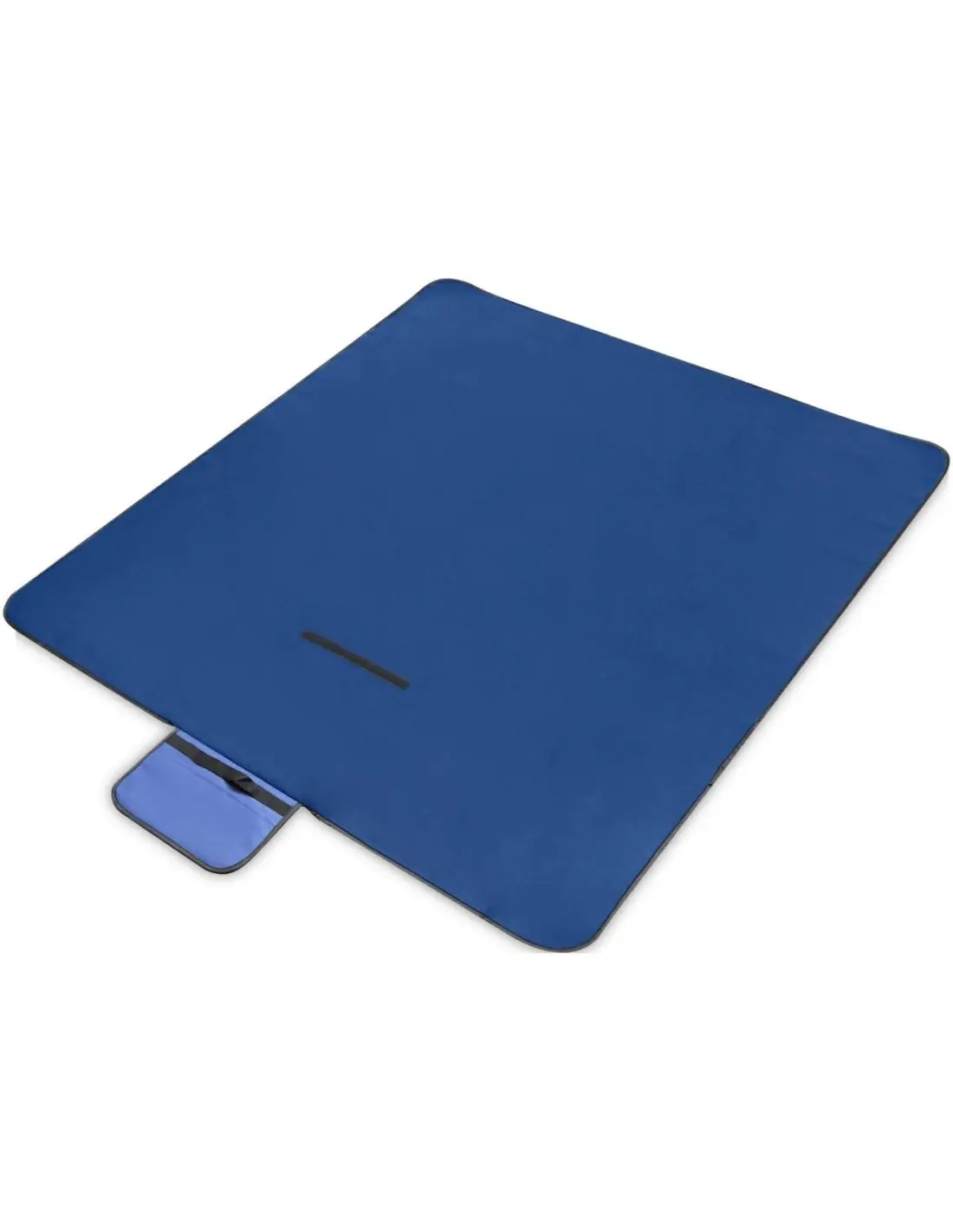 Manta para pícnic resistente al agua de 140 g/m² fabricada con plástico PET reciclado. Una vez plegada y fijada, la manta es fácil de guardar y transportar con el asa de transporte incluida.