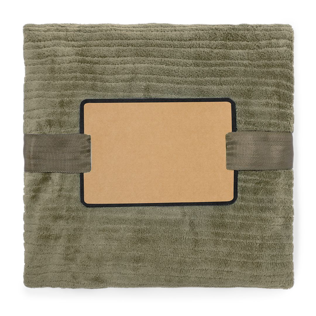 Manta fabricada en poliéster de 240g/m2, muy confortable y de tacto suave y cálido. Disponible en varios colores y presentada en cinta con lámina para fácil impresión, dentro de una bolsa individual reciclada.