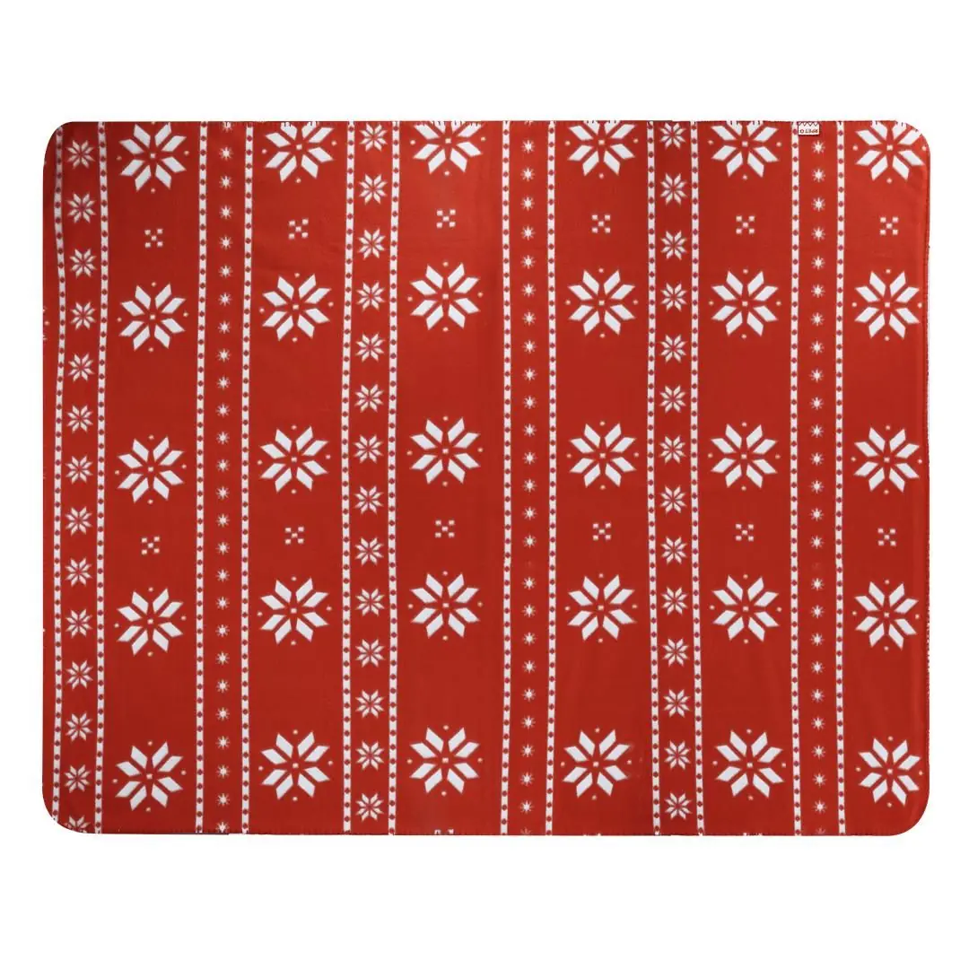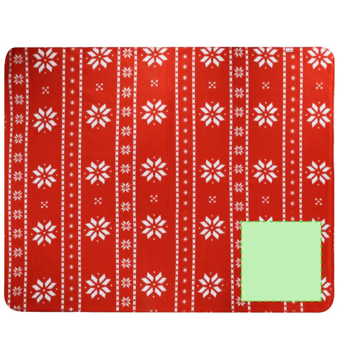 Manta de 130x160 cm fabricada en suave poliéster RPET. Original diseño de navidad de color rojo con motivos navideños en blanco. En suave y cálido...