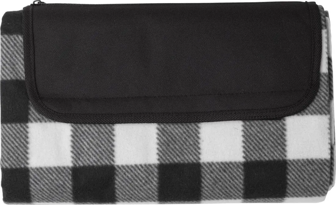 Manta polar plegable de rPET (150 grs). Parte posterior de PEVA, un bolsillo delantero con cremallera y asa corta.