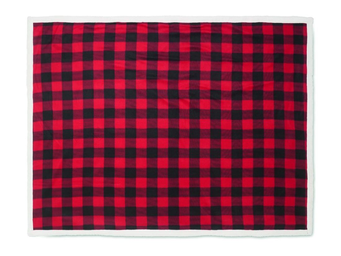 Manta polar forrada de sherpa en 1RPET polar (180 gr/m²) y sherpa de poliéster ( 230 gr/m² ). Presentada en un asa de transporte de nylon RPET.