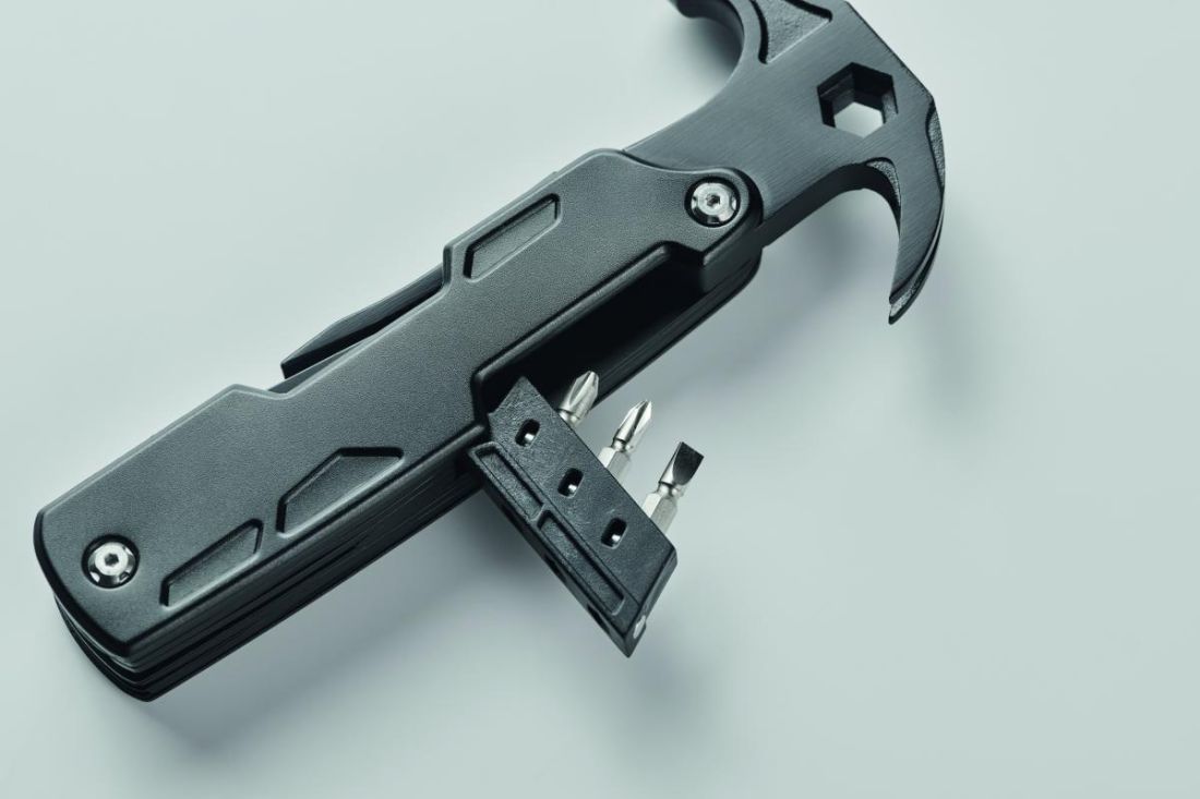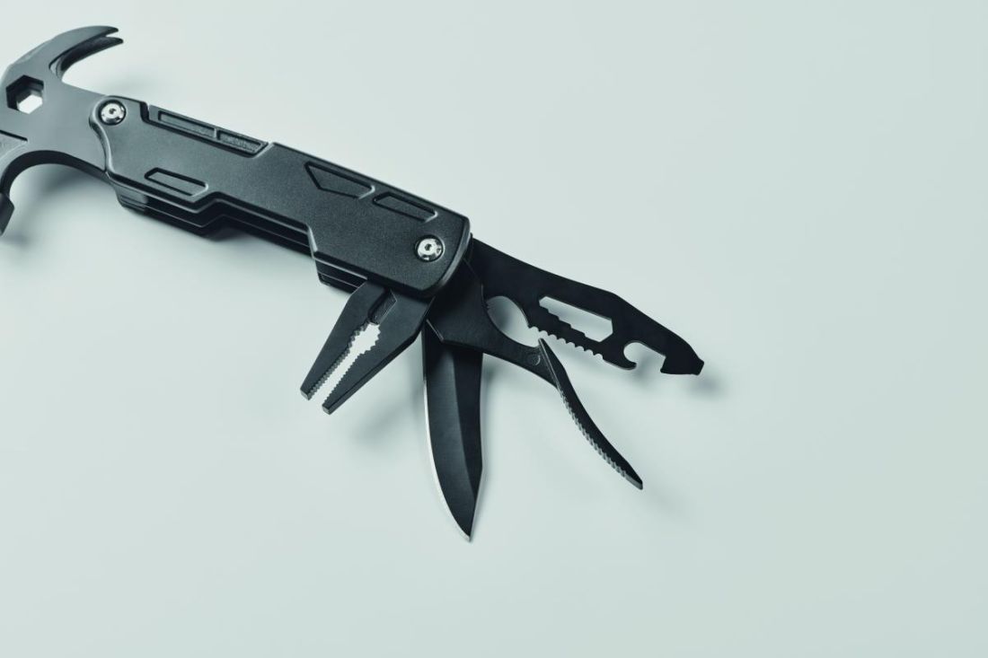 Martillo multiherramienta 14 en 1 de acero inoxidable con mango de aluminio. Incluye alicates, destornilladores, llaves inglesas, cuchillo, sierra,…