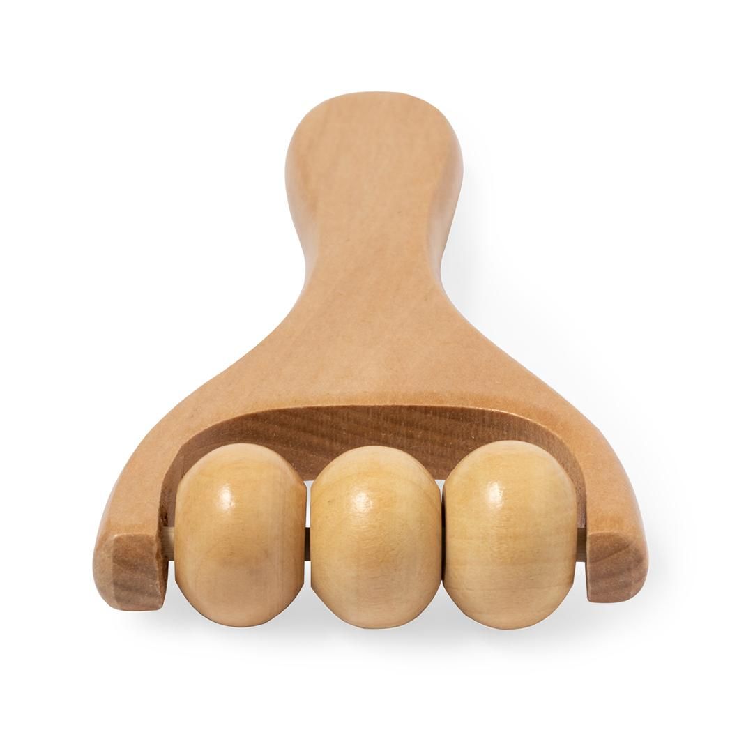 Masajeador elaborado en madera natural. Diseñado para proporcionar alivio y bienestar. Su empuñadura ergonómica garantiza un manejo cómodo, mientras que sus tres rodillos de madera ofrecen eficiencia y un masaje revitalizante, liberando la tensión muscular. Presentado individualmente en caja de diseño kraft.